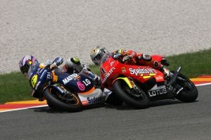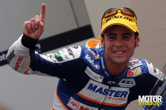 Gelukkig was hij wél in staat zijn machine op te rapen en te finshen, zij het op een achtste plaats. In de laatste kilometers bleek Alvaró Bautista de slimste, én snelste, wist uit de slipstream van teamgenoot de Angelis te komen en voor het eerst een overwinning in de 250 op zijn naam te schrijven.