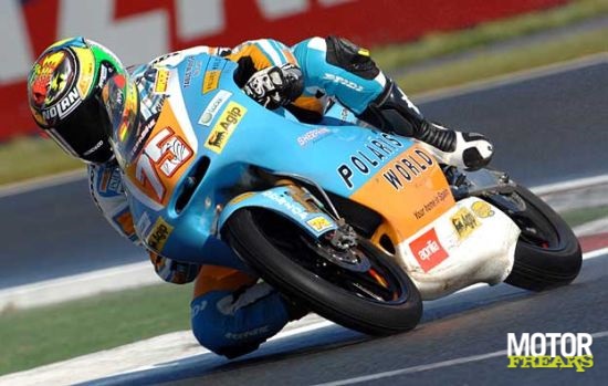 Simone Corsi kwam als eerste het rechte eind op en gaf de winst niet meer uit handen, dansend op zijn Aprilia kwam hij over de finishlijn. Ook zijn team was door het dolle heen en lagen te rollen in de pitbox! Na een derde podiumplek in Japan (2004) is dit zijn tweede en wat voor een. Door vrienden wordt Simone Corsi ook wel "Terminator" genoemd, wordt dit de nieuwe Romeinse held? Joan Olive verzachte het leed voor het Polaris-World team door vanaf een zevende startplaats de tweede podiumplek te pakken en Tomoyoshi Koyama schonk KTM hun eerste podiumplek van dit seizoen door derde te worden.