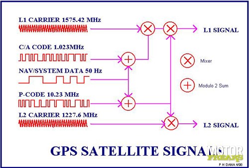 Er zijn dus satellieten en een ontvanger nodig om te weten waar we ons bevinden. Maar hoe weet de GPS-ontvanger nu de exacte locatie? De ontvanger meet de afstanden tot de satellieten. De afstand tot de satellieten wordt gevonden door de tijd te meten waarin de door de satellieten uitgezonden zogeheten Pseudo Random Noise pulsen, kortweg signalen, de ontvanger bereiken. Twee codes worden uitgezonden op twee verschillende frequenties, L1 en L2. L1 is voor burgerdoeleinden beschikbaar en L2 kan alleen door het Amerikaanse leger worden gedecodeerd.