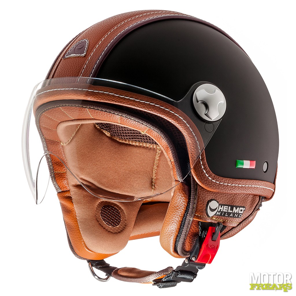 Wij zien ons er wel mee met een Vepsa door de PC Hoofdstraat scheuren, met deze Helmo Milano Pelledura, waarvan het design helemaal is geslaagd. Zeker in de uitvoering met witte helmschaal en bruin leder, wat volgens de Milanesen zelfs eco-leder is.