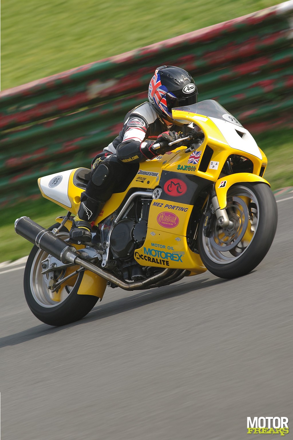 Daarna, via een 4 mm grote boring naar 980 cc en enkele exotische nokkenassen afkomstig van de Duitse nokkenspecialist wijlen Gunther Knuppertz, gemonteerd in de geflowde cilinderkop van George Mansfield, zorgden John Carpenter van Mistral Engineering en race-ingenieur Alistair Wager van Taylormade Racing voor 142 pk bij 9.800 tpm tegen de tijd dat we ermee raceten op