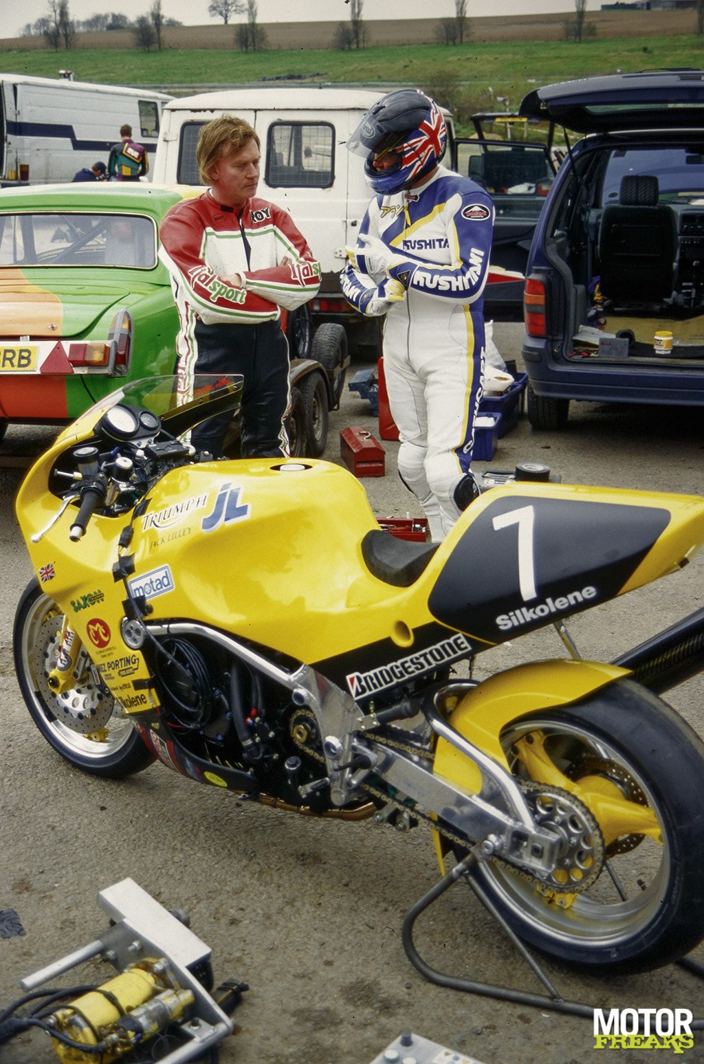 Mooi was die tijd...rest uit de hele wereld, met name Italië, dat ervoor zorgde dat de menigte om hem heen dromde, waar we ook raceten, noch dat de motor de eerste door Triumph aangedreven motorfiets uit het tijdperk van John Bloor was die zijn stempel drukte op de internationale racescene.
