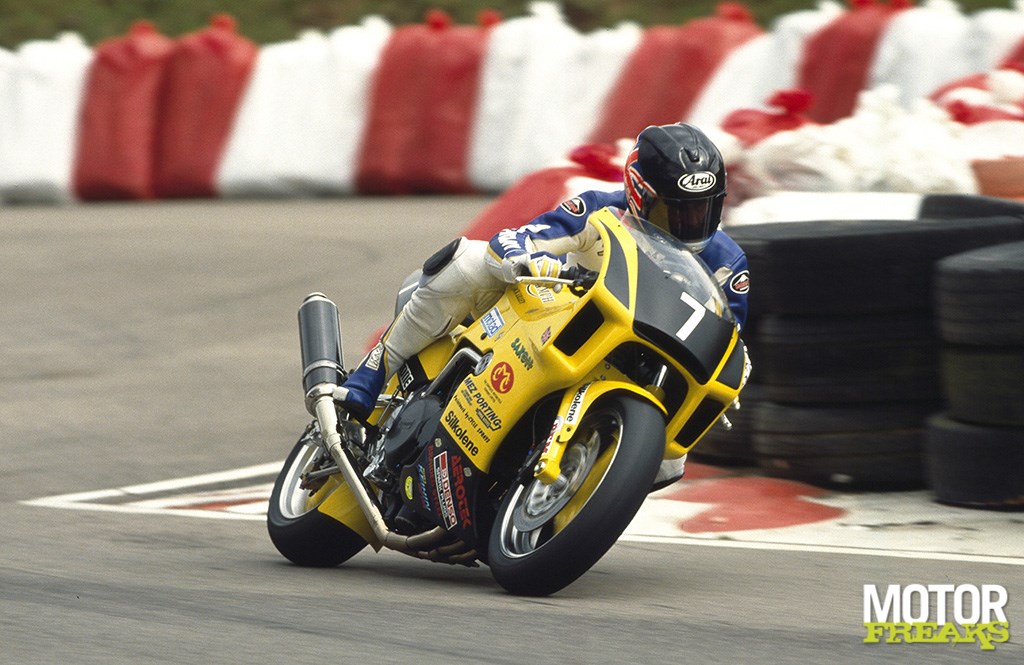Het hielp hen echter niet, want de thermische efficiëntie van de Triumph-motor zorgde ervoor dat hij nooit heet genoeg werd om de fantastische starts te verpesten die ik consequent vanaf de lijn kon maken, dankzij zijn geweldige koppel en mega-middengebied, in combinatie met een perfect afgestelde koppeling. De Saxon triple was een van de makkelijkste motoren om bij de start te lanceren waar ik ooit op heb gereden in mijn 50-jarige racecarrière. Bovendien, omdat ik er direct op was overgestapt na drie jaar op de Bimota Tesi met fabrieksnaafversnelling, was mijn brein al geprogrammeerd om te weten dat ik op een motor als deze veel dieper in de bocht kon remmen dan met een telescoop voorvork, zonder dat ik me zorgen hoefde te maken dat ik de voorkant zou verliezen.