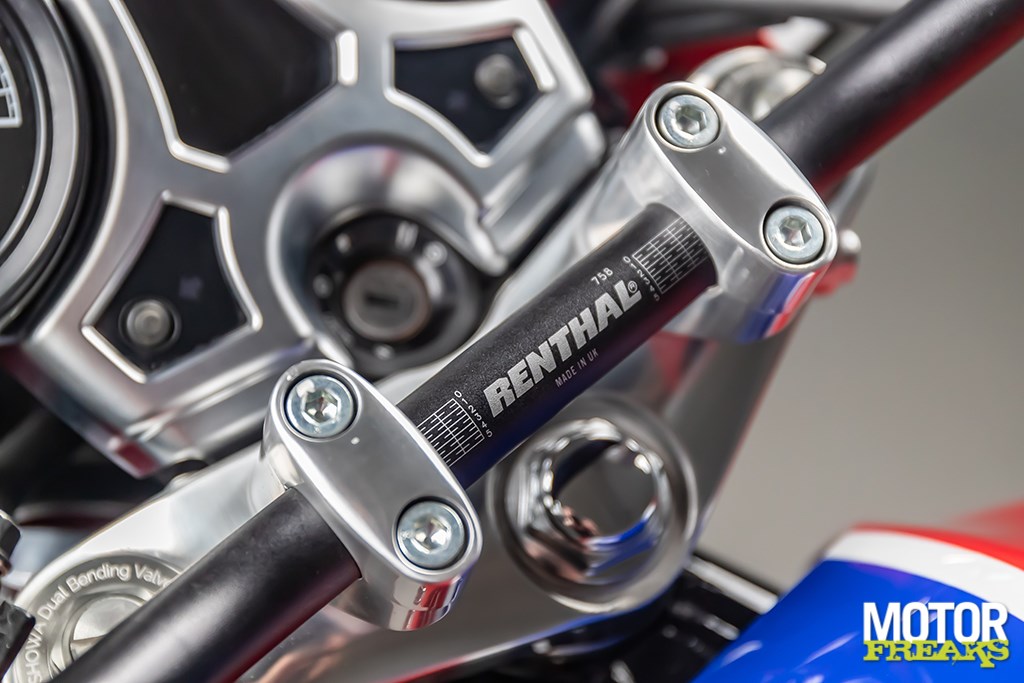 Dus maken we een sterk gelimiteerde productieserie van 54 CB1100 RS 5Four motoren, elke individueel genummerd. Het nummer is subtiel in het nummer 5 van de vernikkelde 5Four badge geëtst en in het kontje van de motor geplaatst. Het spuitwerk moest teruggrijpen naar de periode uit mijn jeugd toen Honda het WK Endurance domineerde met hun rood/wit/blauwe racers. Er zijn geen stickers gebruikt, alles is met de hand gespoten, zelfs het retro Honda logo en de vleugel."