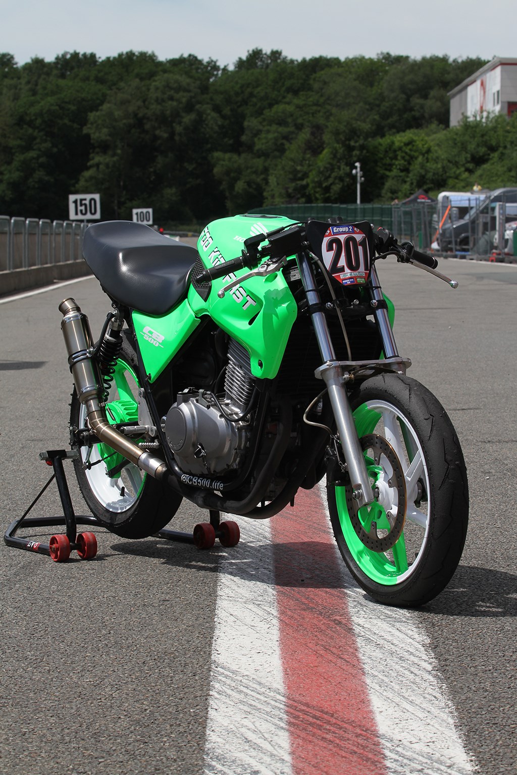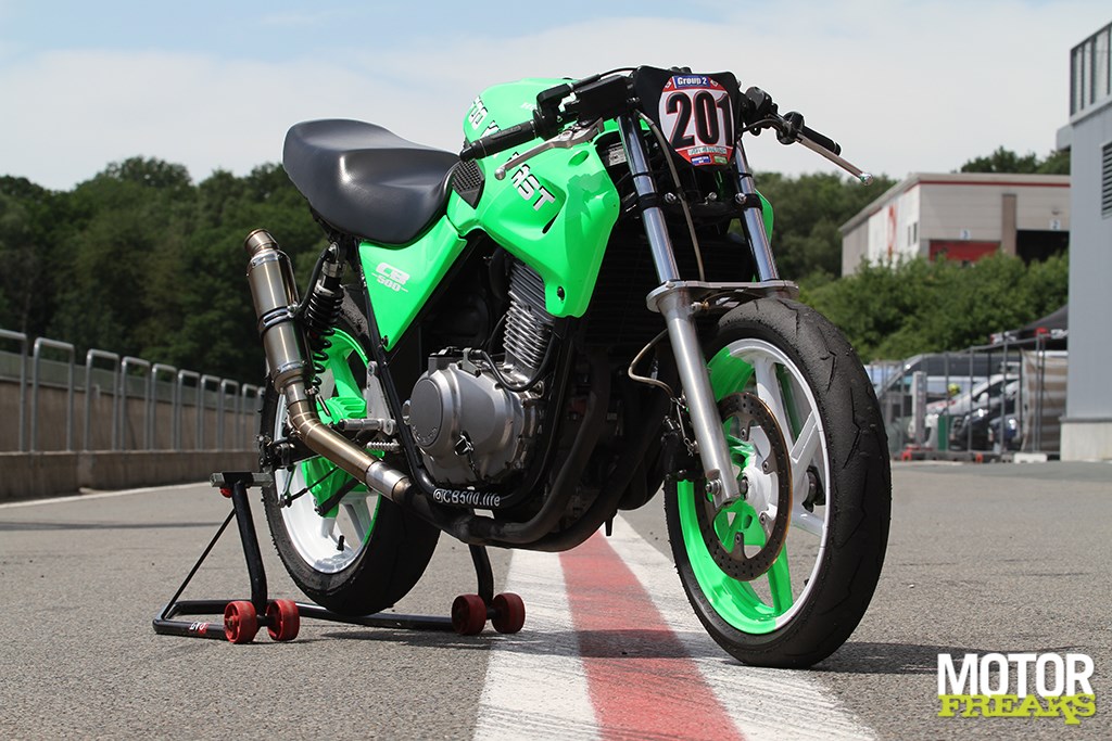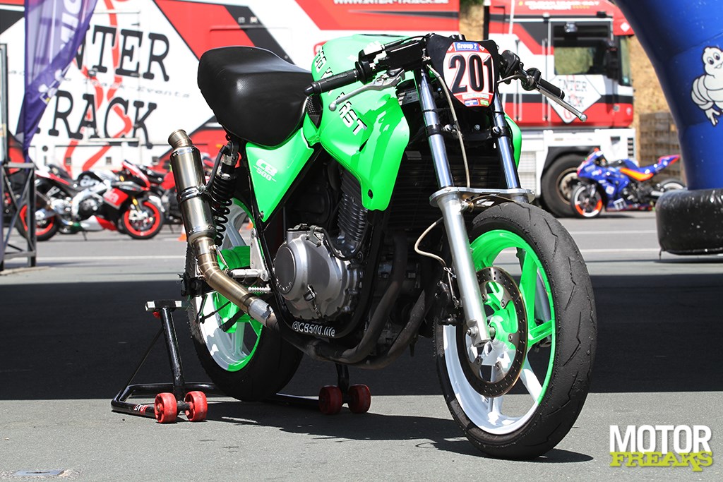 Inmiddels zijn er al een groot aantal rijders die een CB hebben aangepast, vaak bedoeld als extra circuitmotor voor erbij, wat de lol alleen maar groter maakt. Op sommige dagen zitten we met zovelen samen in een groep rijden dat elke rijsessie meer weg heeft van een Moto3 Grand Prix, met close racing, slipstream gevechten, uitremacties en driedik door de bocht. Met als gevolg dat de eerste circuitmotor die dag vaak werkeloos en onbenut in de paddock blijft staan.