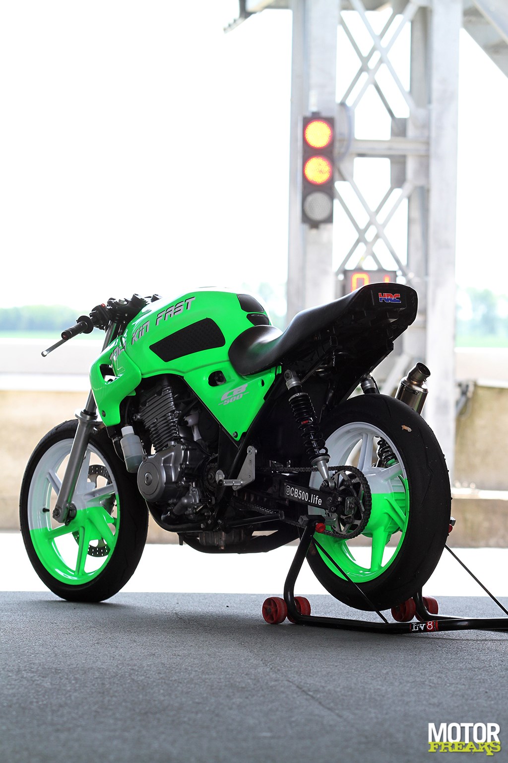 Dat is wellicht nog wel het leukste van alles, veel fun en rijplezier voor weinig geld. Gemiddelde aankoopkosten voor een CB500 bedragen circa duizend euro, met de noodzakelijke upgrades zoals eerder vermeld ben je voor nog een vijftienhonderd euro in totaal helemaal klaar. De 499cc twin laat je het best ongemoeid, deze loopt prima met de standaard sproeiers en het originele luchtfilter. Voor de noodzakelijke grip