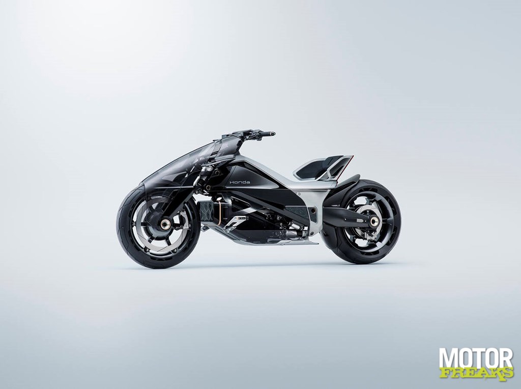 Op twee wielen toont Honda de EV Outlier Concept, een gewaagde blik op hoe motorfietsen er rond 2030 uit kunnen zien. Dankzij de vrijheid van elektrische aandrijving kon het designteam een extreem lage, dynamische vorm creëren met in-wheel motoren in zowel voor- als achterwiel. Het resultaat: een futuristische machine met een agressieve, bijna organische uitstraling – meer sci-fi dan straatfiets, maar toch herkenbaar Honda.