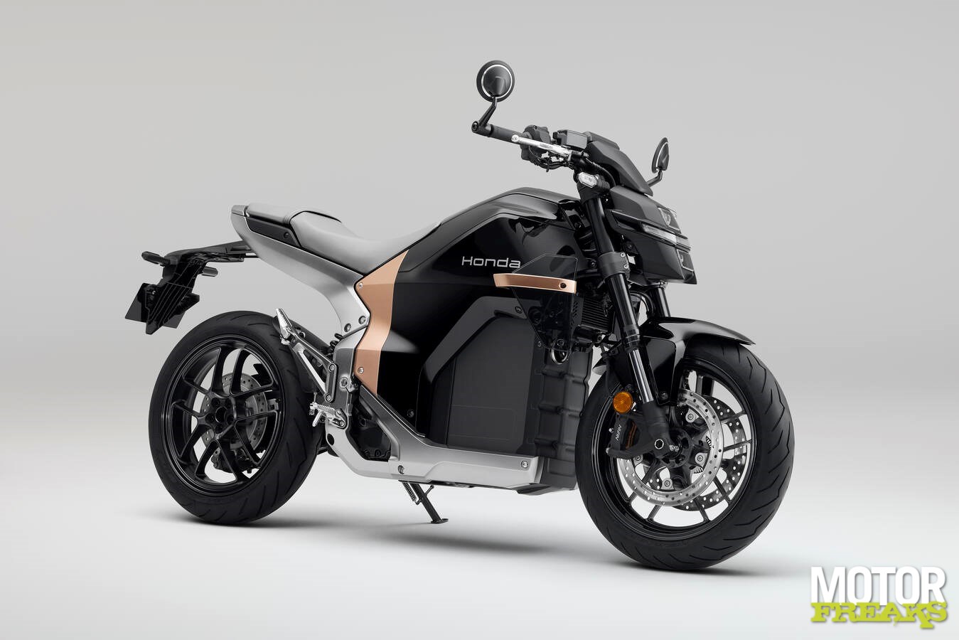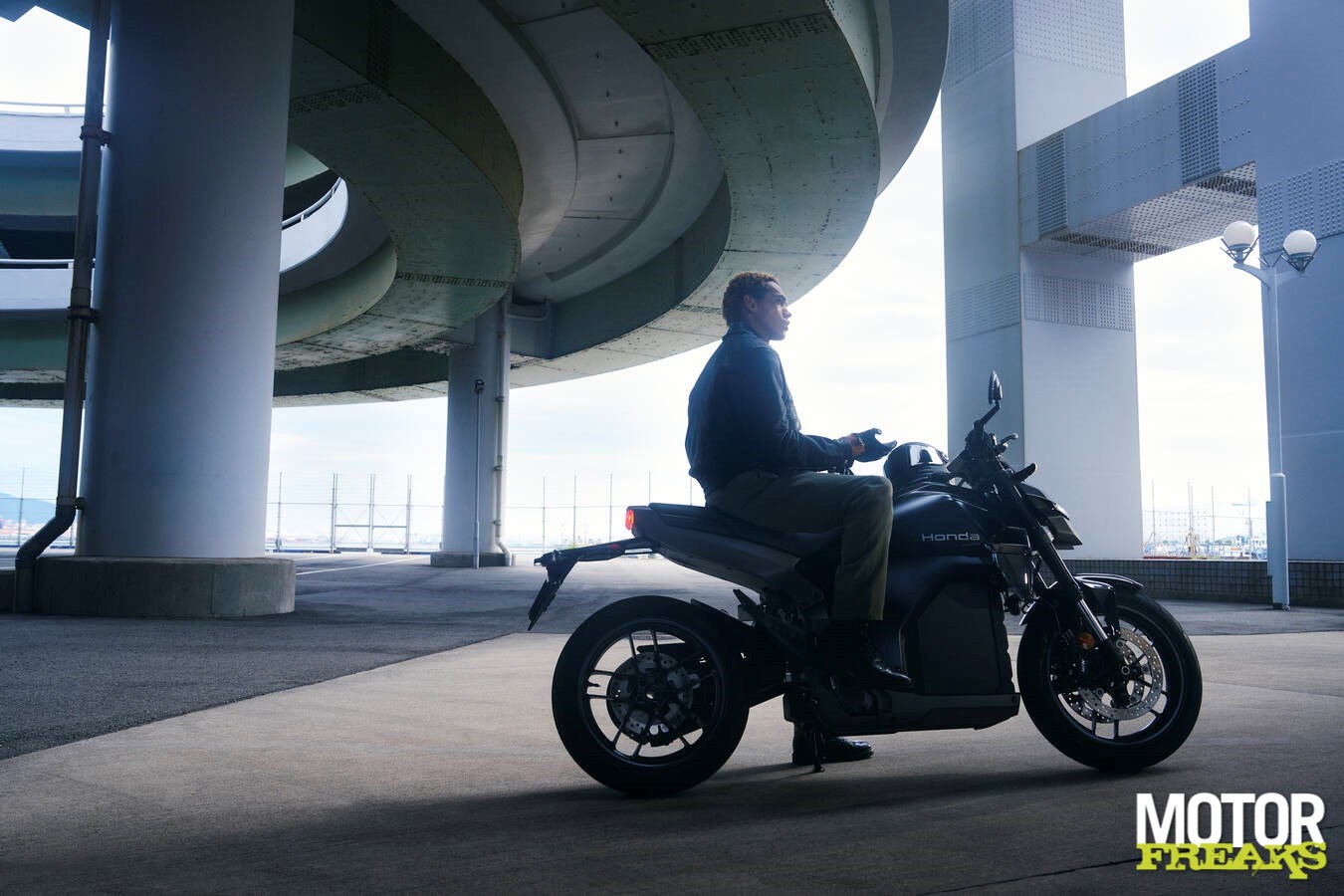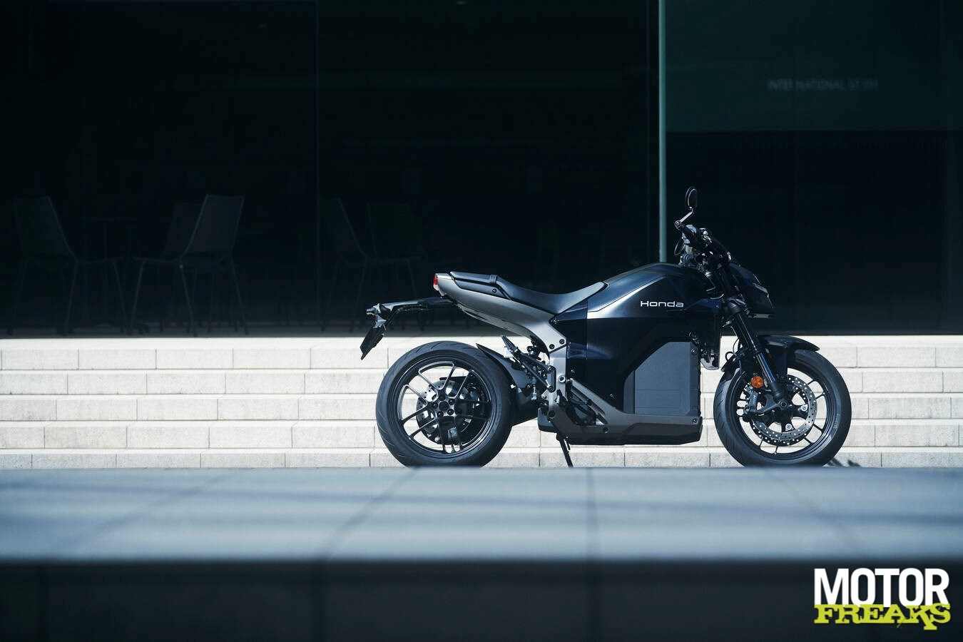 De overall afmetingen zijn 2.156 mm lang, 1.085 mm hoog, met een stuuruitslag van 35° en draaicirkel van 2,8 m, waardes die volgens Honda vergelijkbaar zijn met een CB500 Hornet. Zo niet het gewicht, dat met 217 kilo voor EV-begrippen echt helemaal niet verkeerd is, maar wel behoorlijk wat kilo's zwaarder dan die Hornet. De rijpositie is iets relaxter dan de Hornet, met lagere stuur- en voetsteunplaatsing voor een rechte, comfortabele houding in druk stadsverkeer.