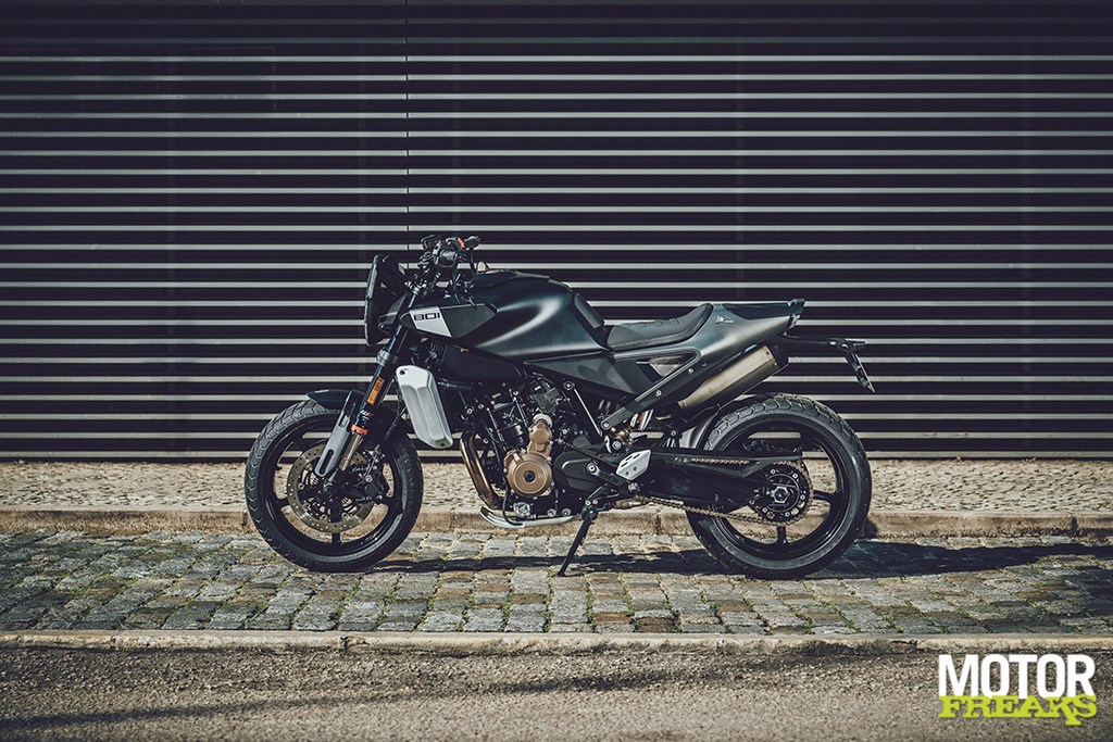 Tot zover de mooie woorden van Husqvarna, maar net als de 401, 125 en niet te vergeten de 901 series is deze nieuwste Husky onderhuids gewoon een KTM, maar dan voorzien van een ander uiterlijk met bijbehorende ergonomie. In dit geval de Husqvarna Svartpilen variant op de 790 Duke, die in Europa alleen als 95 pk L-variant leverbaar is, maar in de rest van de wereld net als deze Svartpilen 801 een topvermogen van 105 pk heeft.