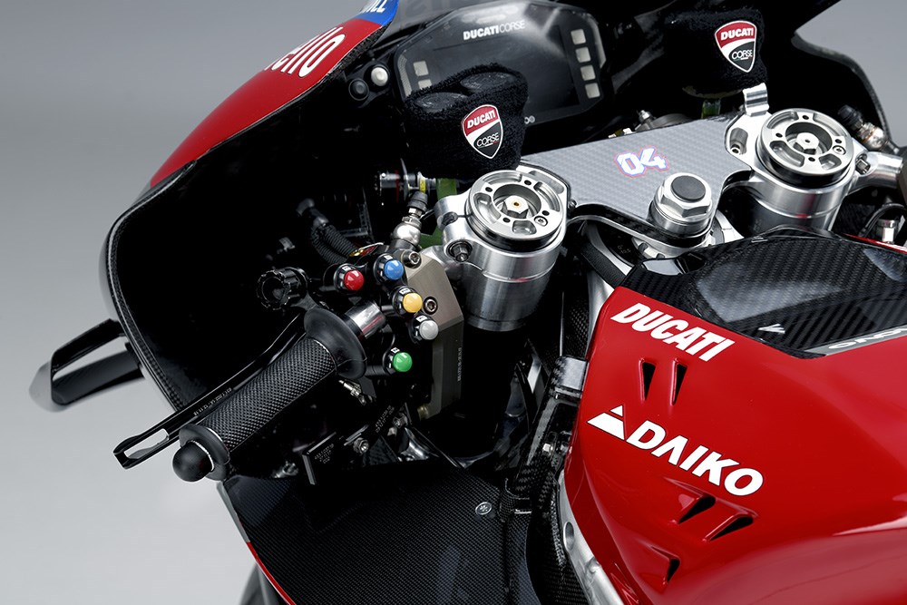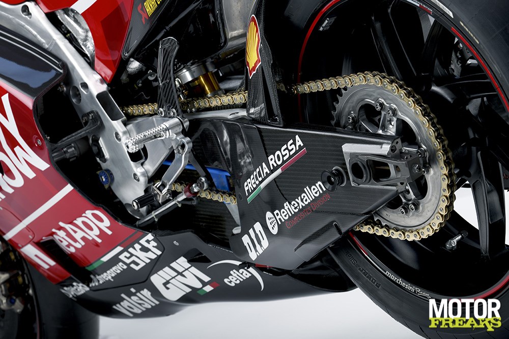 De GP19 wordt aangedreven door een 1.000cc V4 met seamless versnellingsbak, gemonteerd in een aluminium Evo twin-spar frame, met een 48 mm Öhlins upside down voorvork en Öhlins achtershock met Ride Height Device, dubbele Brembo 340 mm carbon schijven met 4-zuiger remklauwen voor en een enkele stalen schijf met 2-zuiger remklauw achter.