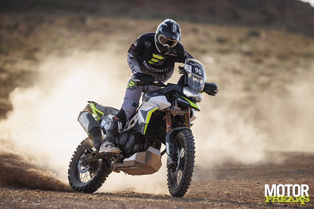 De volledig nieuwe Trail en Maxi-Trail categorieën van de Baja van Aragon werden in het leven geroepen om het steeds groeiende aanbod aan productie Adventure motoren in de kijker te zetten en daarin greep de Triumph zijn kans om z’n troeven optimaal uit te spelen.