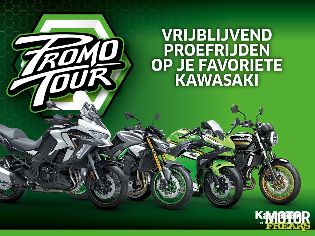 Zo ook Kawasaki, dat inmiddels al flink wat jaartjes de Promo Tour organiseert, waarbij zo'n beetje elke week een Kawasaki dealer testritten met de complete line-up organiseert. En met 27 officiële Kawasaki-dealers verspreid door het hele land is er altijd een locatie bij jou in de buurt. Wil jij op een ontspannen en leuke manier kennismaken met onze gloednieuwe 2025 modellen? Bezoek dan www.kawasakipromotour.nl en boek direct een vrijblijvende proefrit op jouw favoriete model.