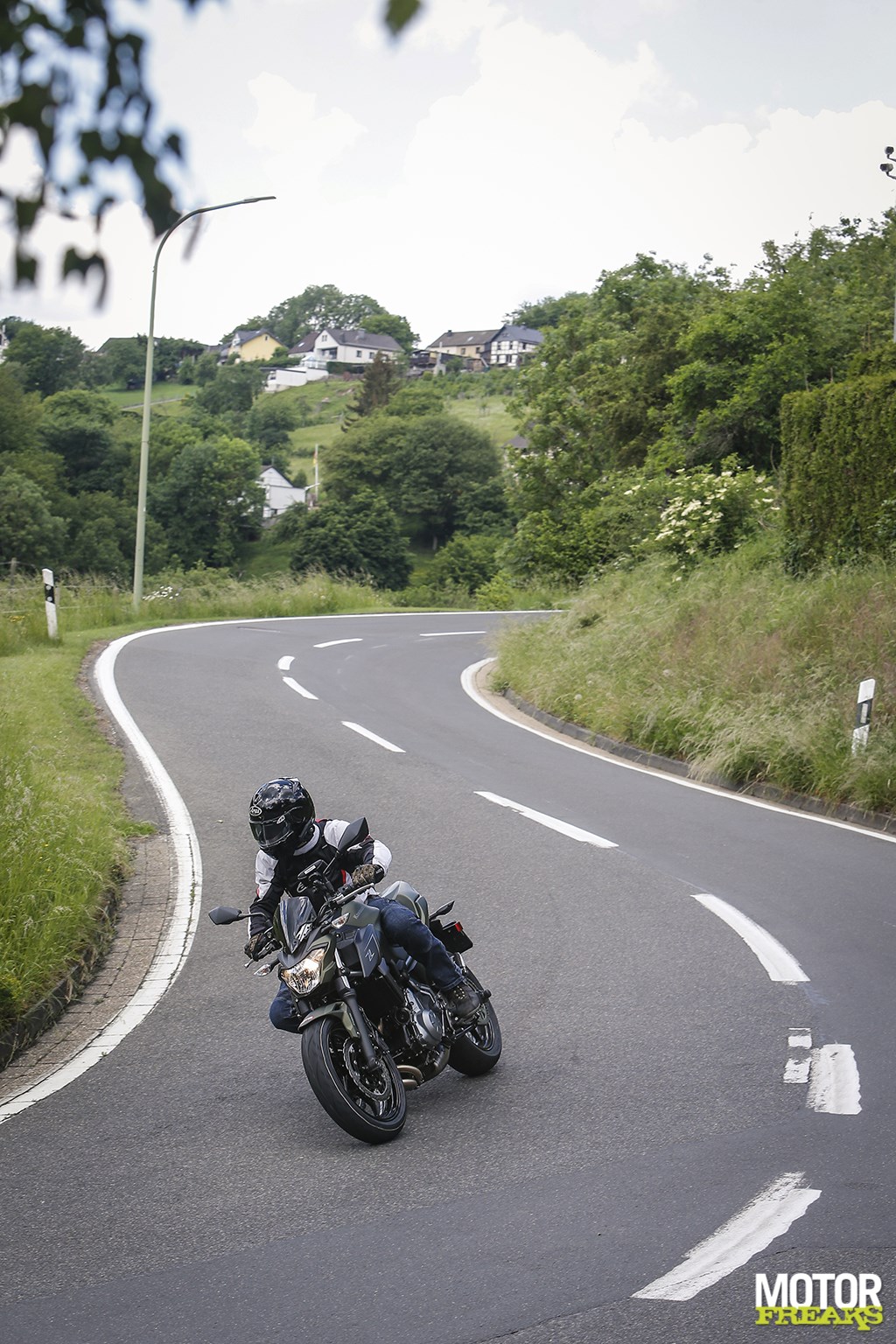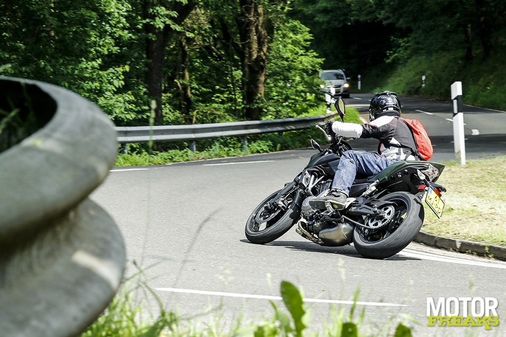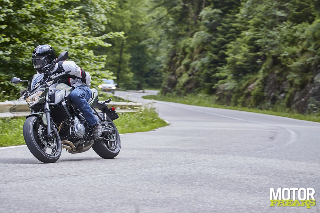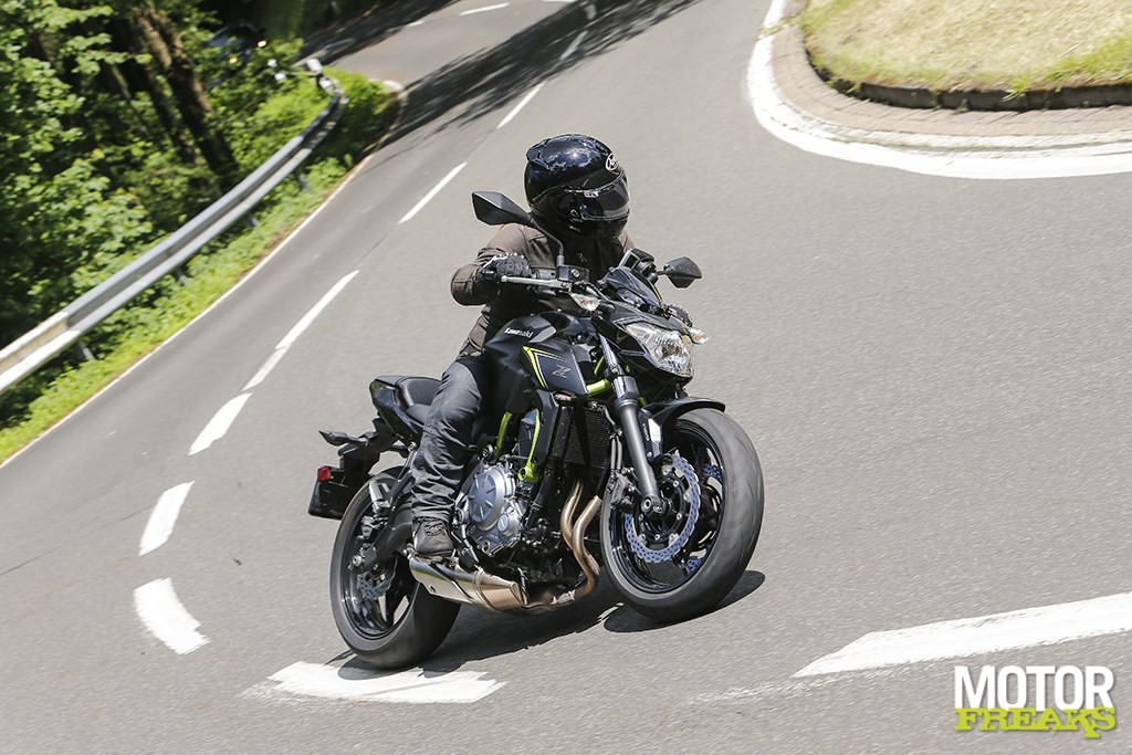 Vanaf de koffiestop haal ik alles uit de kast om het verbruik nog verder aan te scherpen en maak daarbij optimaal gebruik van de vele afdalingen, waarbij het de kunst is om precies op het hoogste punt genoeg snelheid te hebben opgebouwd om de Z650 vervolgens maximaal met uitgeschakelde motor te laten rollen. Plat op de tank, de versnellingsbak in neutraal en rollen maar tot de snelheid onder de 40 km/u zakt, starten, beetje tussengas, direct 2-3 opschakelen en weer doorrijden. Start-stop voor verkeerslichten deed ik al, maar doe dat nu nog een tikkie extremer en maak er een sport van om zoveel mogelijk met uitgeschakelde motor te rollen. Snelheden tot 75 km/u binnen de bebouwde kom zijn geen uitzondering,