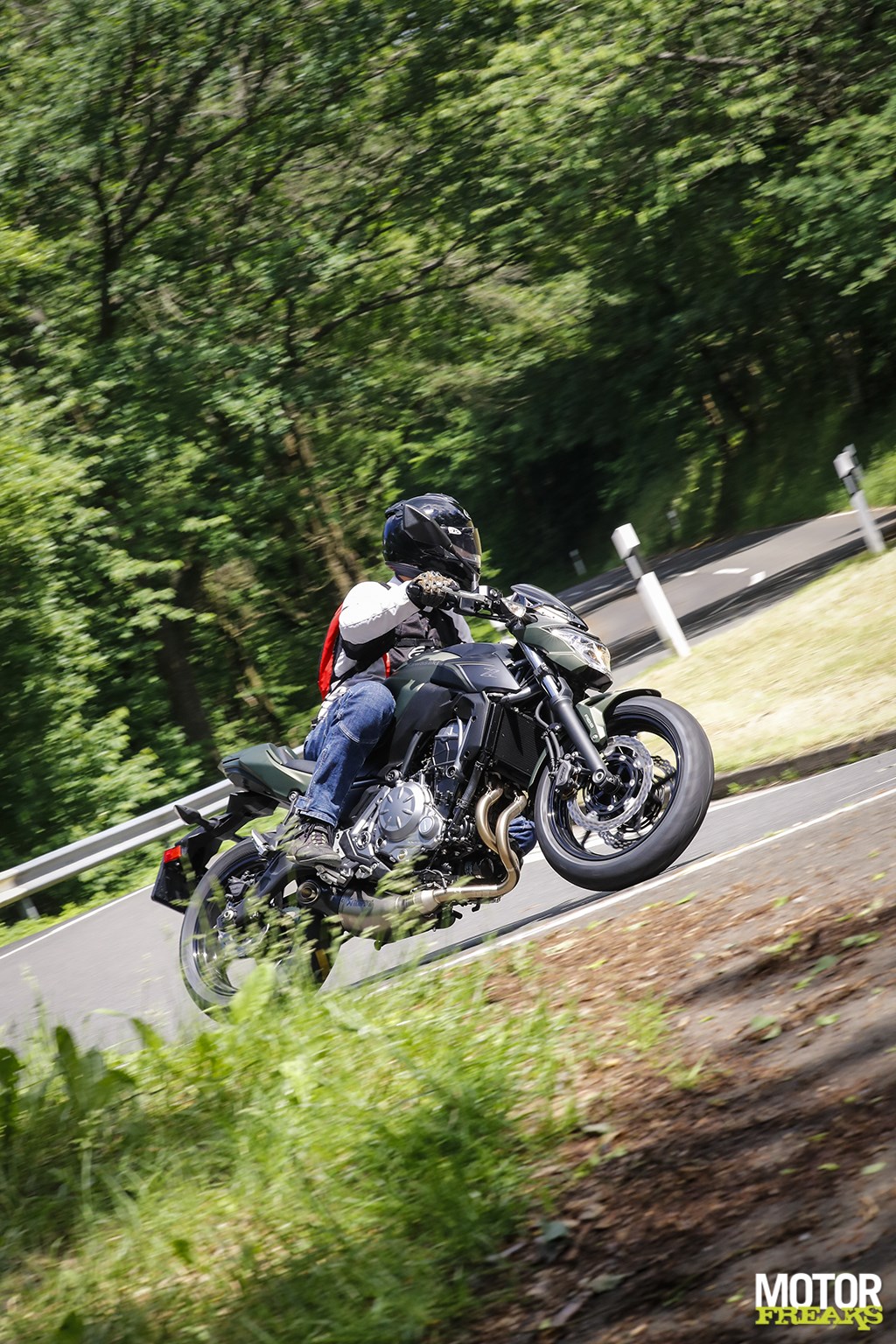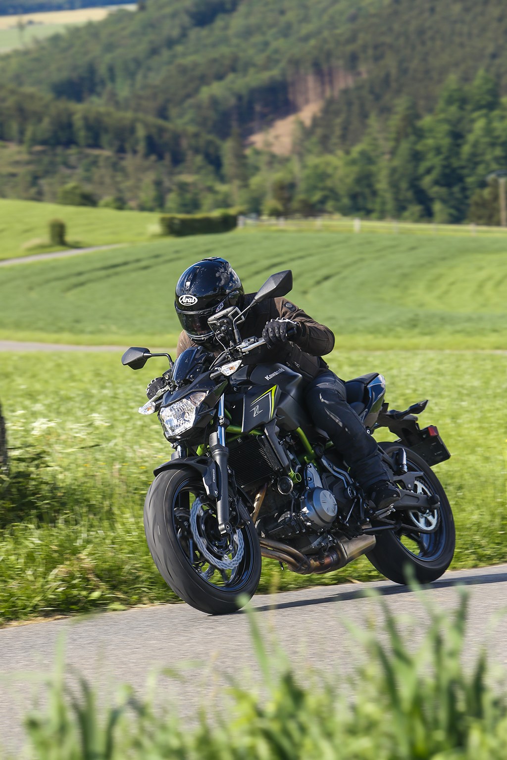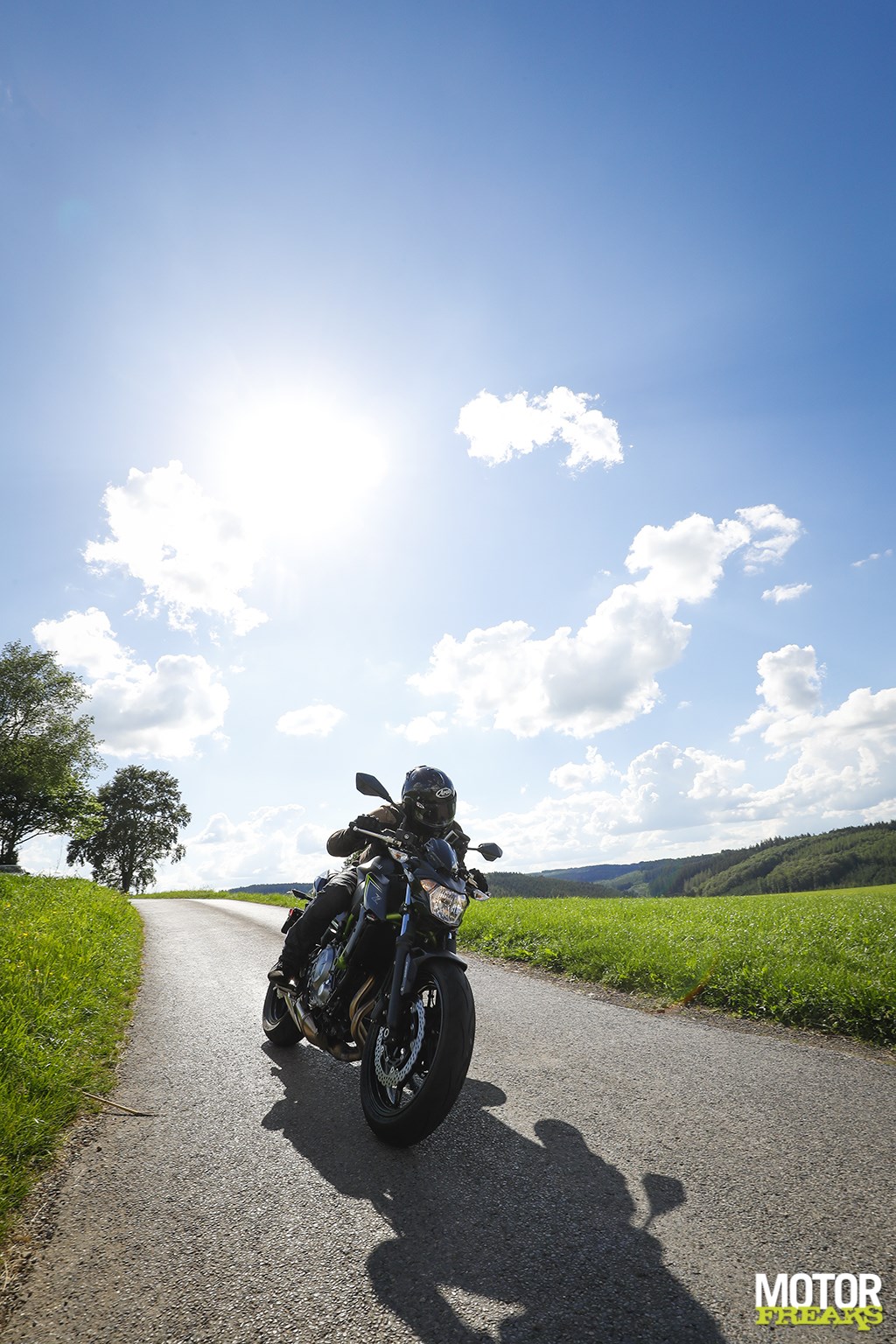 Vanaf de koffiestop haal ik alles uit de kast om het verbruik nog verder aan te scherpen en maak daarbij optimaal gebruik van de vele afdalingen, waarbij het de kunst is om precies op het hoogste punt genoeg snelheid te hebben opgebouwd om de Z650 vervolgens maximaal met uitgeschakelde motor te laten rollen. Plat op de tank, de versnellingsbak in neutraal en rollen maar tot de snelheid onder de 40 km/u zakt, starten, beetje tussengas, direct 2-3 opschakelen en weer doorrijden. Start-stop voor verkeerslichten deed ik al, maar doe dat nu nog een tikkie extremer en maak er een sport van om zoveel mogelijk met uitgeschakelde motor te rollen. Snelheden tot 75 km/u binnen de bebouwde kom zijn geen uitzondering,