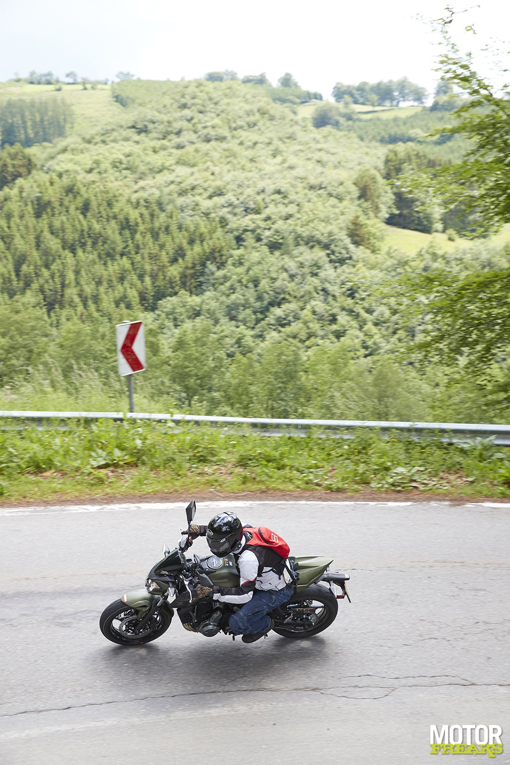 Gestart met een verbruik van 1:25,7 had ik dat tijdens de voorbereiding al weten aan te scherpen tot 1:28,1, waardoor ik me deze Z650 Eco Challenge ten doel had gesteld om minstens 1 op 30 te scoren. Of beter nog: 1 op 33, omdat zich dat bij de Belgen mooi naar een verbruik van exact 3 liter (op 100 km) vertaalt. Als 'official' was het mijn taak om telkens als eerste bij alle ingeplande stops voor koffie, Belgische frieten en de broodnodige fotoshoots (immers, zonder foto's geen verhaal) te arriveren om de anderen – die wel voor de prijzen mochten gaan – op te vangen. Omdat ik als enige wist waar de fotografen zich hadden verstopt - en niet onbelangrijk, waar de lunch- en koffiepauze was gepland - was iedereen er weliswaar op gewezen dat om die reden ik niet mocht worden ingehaald, maar het laatste wat ik wilde was langzamer zijn dan de rest.