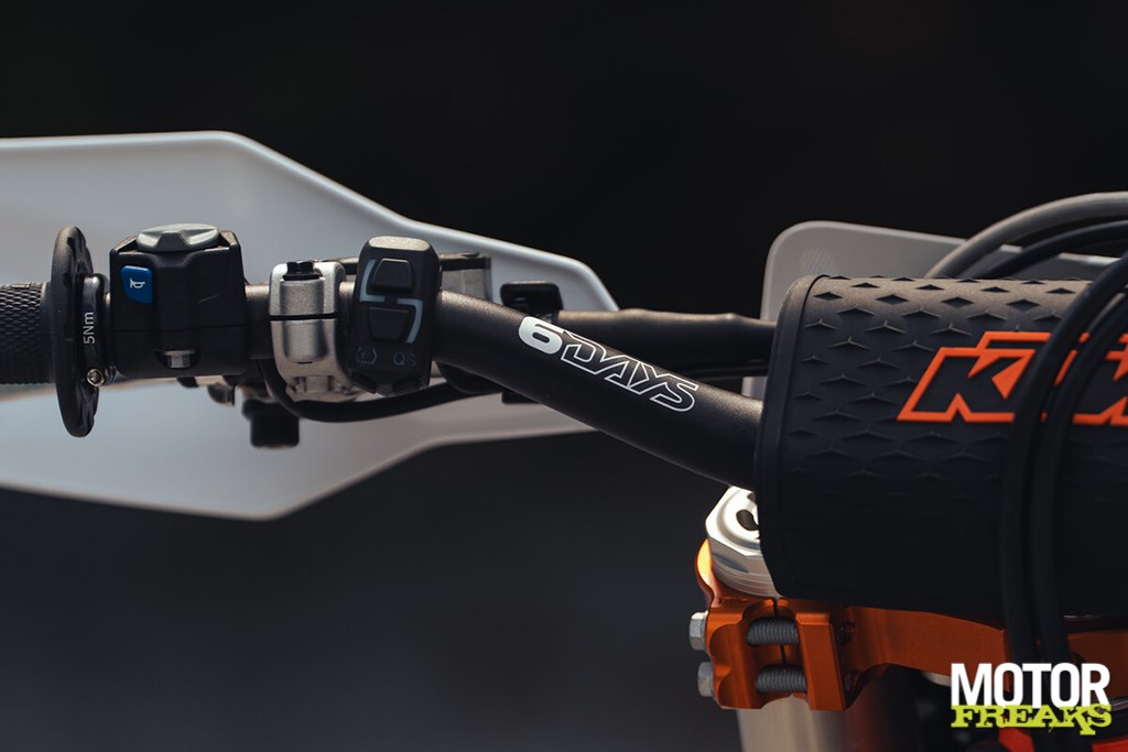 Omdat de Six Days dit jaar in Italië werd gehouden, hebben de 2026-modellen een speciale livery in blauw, wit, groen en rood. Frame in fel oranje, CNC-gefreesde kroonplaten, trekker voor de vooras, Supersprox stealth achtertandwiel, speciale 6DAYS-handvatten, een blauw zadel met extra gripstof en natuurlijk branding op demper en velgen. Je hoeft niet te zoeken: deze dingen vallen op.