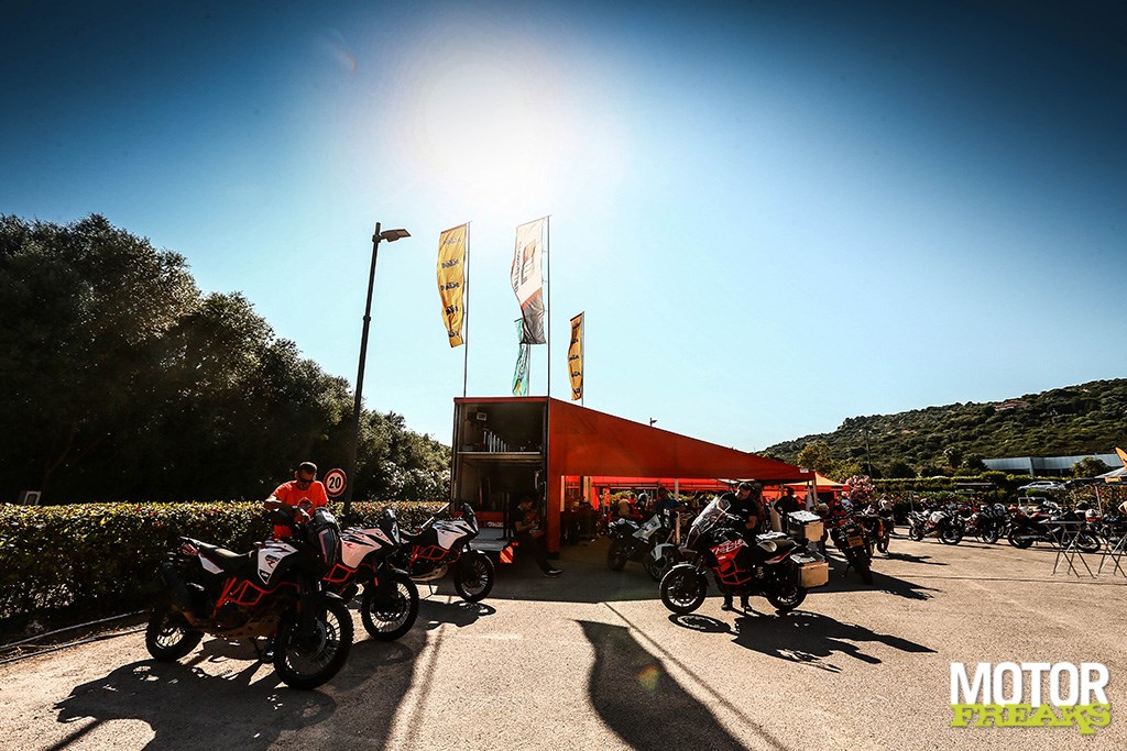 Ik bevind me in het gezelschap van twee Duitsers, een Italiaan, een Fransman en nog een Nederlandse collega, als vertegenwoordiger van een select groepje media dat voor dit evenement is uitgenodigd en – in tegenstelling tot de deelnemers – de luxe heeft gehad om rechtstreeks naar Sardinië te vliegen, in plaats van met de motor naar het Italiaanse eiland in de Middellandse zee te rijden. Vooruit, op de Italiaanse collega na, die vanuit Bologna met ‘zijn’ 1290 Super Adventure