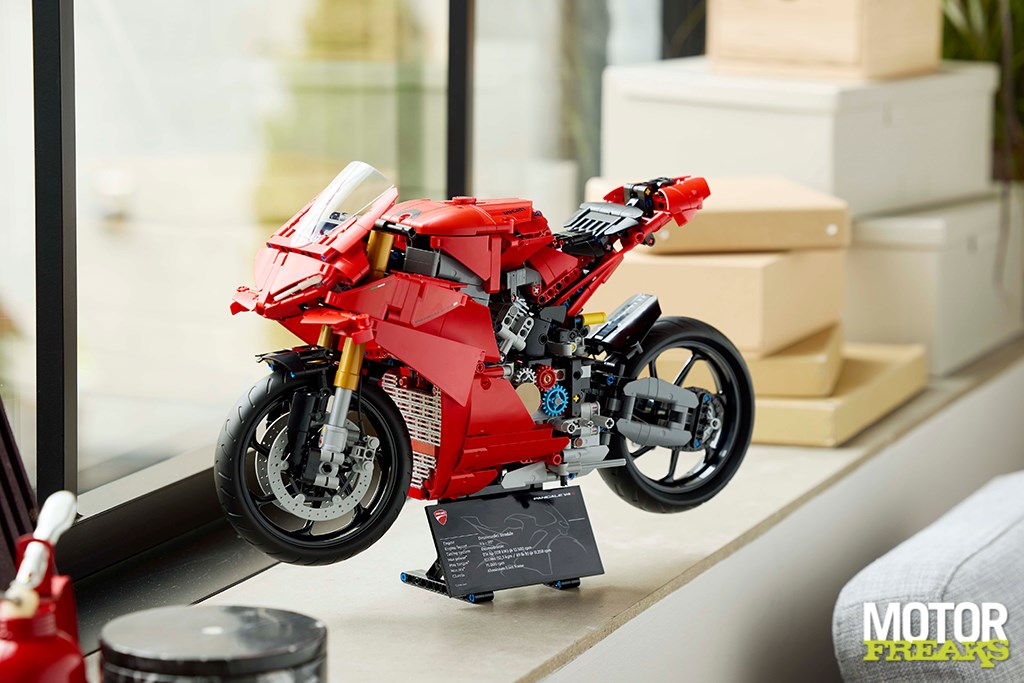De LEGO Technic set is een eerbetoon aan deze motorfiets en biedt volwassenen met een passie voor modelbouw en motoren een meeslepende bouwervaring. In feite onderscheiden alle details zich door hun realisme, want liefhebbers van bakstenen kunnen de voor- en achterwielophanging in elkaar zetten, de besturing testen en het schakelpedaal ontdekken, dat de mechanica van de Ducati perfect simuleert.