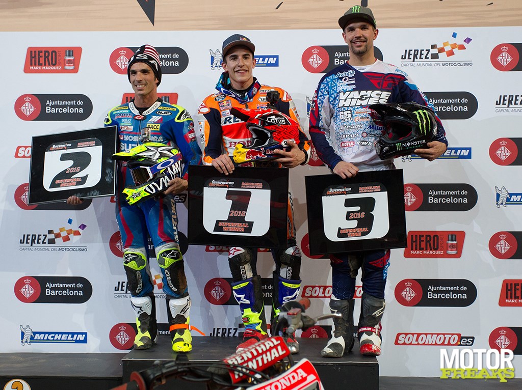 De afgelopen twee jaar ging de kroon naar de Amerikaanse Flat Track ster Brad Baker, maar dit jaar heeft Marc Marquez de prestigieuze Superprestigio weer op naam geschreven. De drievoudig MotoGP wereldkampioen won de superfinale voor eigen publiek in Barcelona’s Palau Sant Jordi stadion.