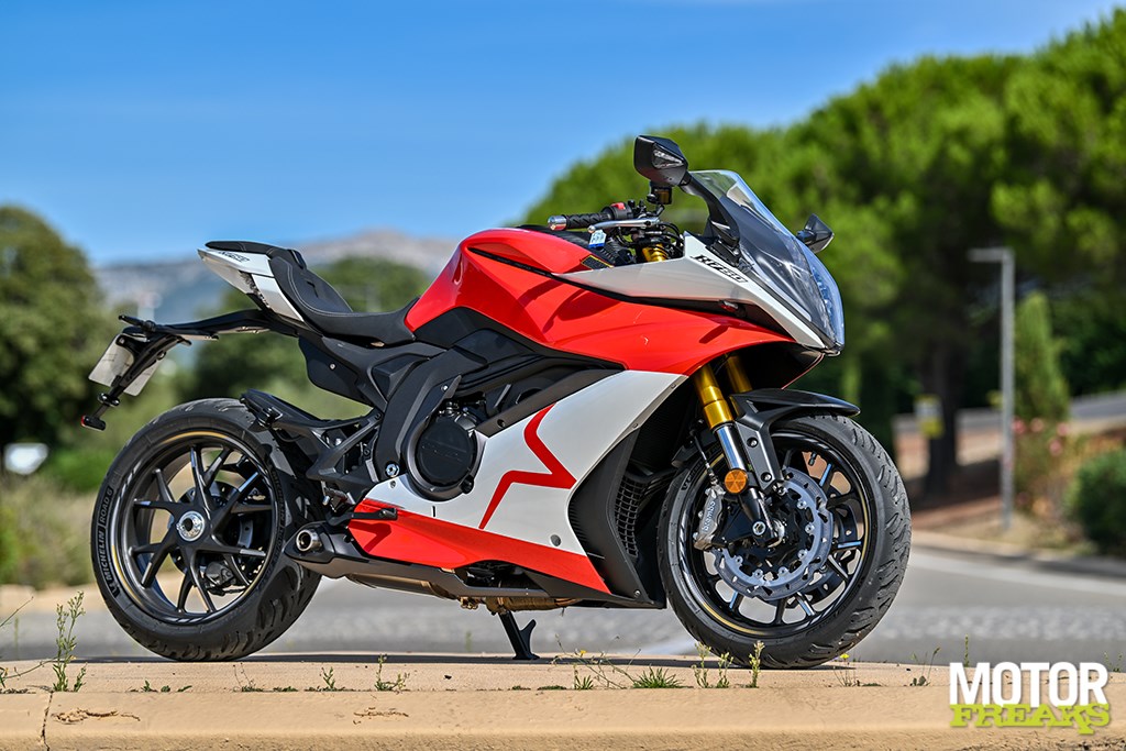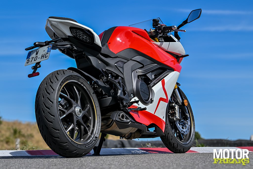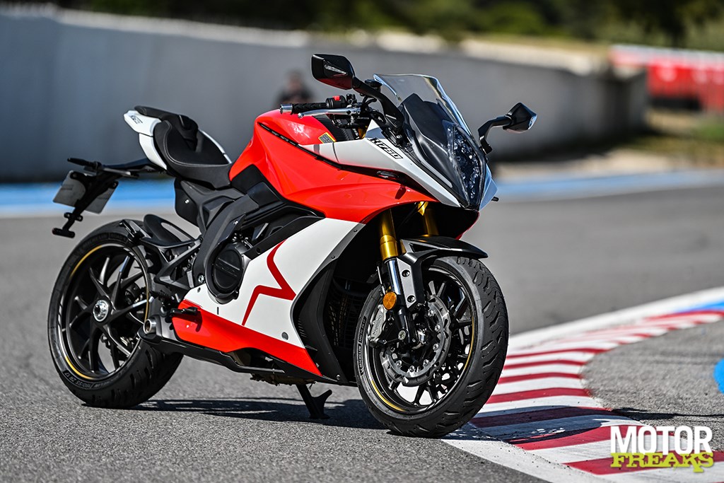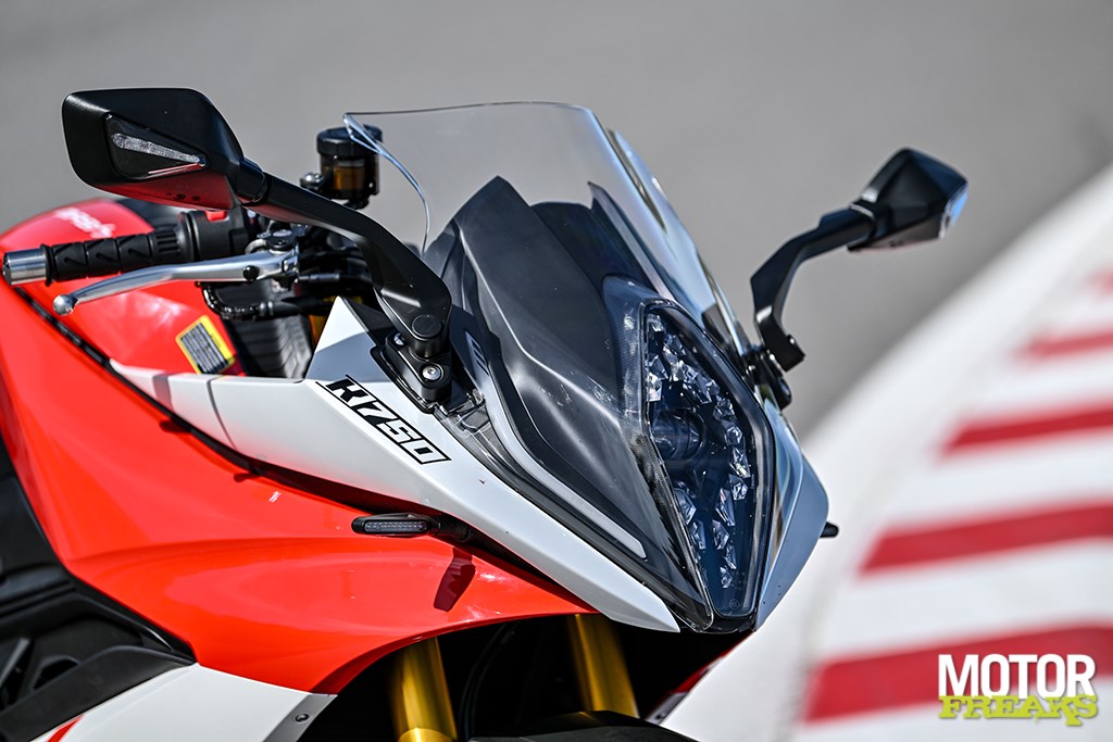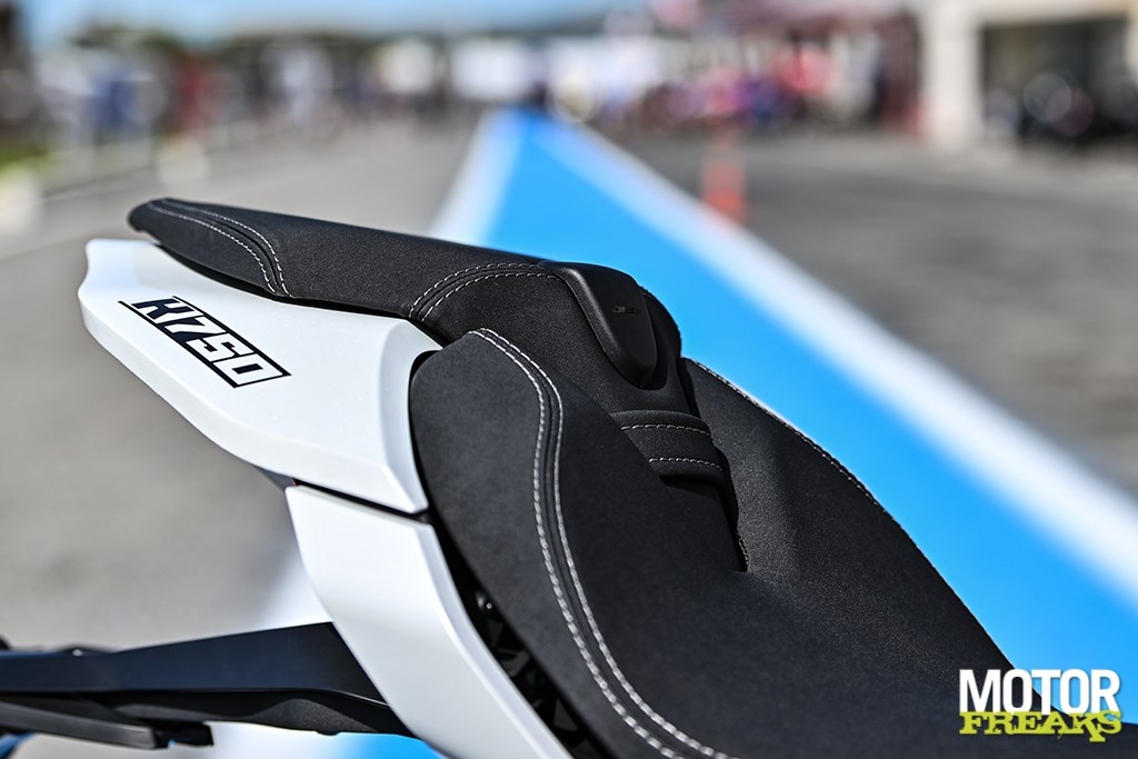 Nog meer cijfers? De K750 heeft een wielbasis van 1.464 mm en dat is weliswaar in lijn met de wielbasis van Suzuki's GSX-8R, maar wel flink langer dan die van de Aprilia RS660 (1.370 mm) en de Yamaha YZF-R7 (1.395 mm). Ook wat het gewicht betreft ligt de K750 met 206 kg rijklaar met volle 14 liter tank op het niveau van de GSX-8R, die 205 kg op de schaal zet, maar dat zijn eveneens flink wat kilo's meer dan de RS660 (183 kg) en R7 (188 kg).