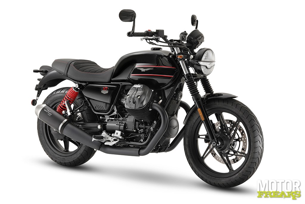 De Moto Guzzi V7 Stone Special Edition maakt een einde aan de matte tinten die typerend zijn voor de Stone-versie - volgens de Italianen de meest eigentijdse van de V7-familie - om te pronken met een speciaal Shining Black-kleurenschema, op de tank aangevuld met met graphics en rode details die herinneren aan de stijlkenmerken van de sportiefste modellen van het merk van de Adelaar.