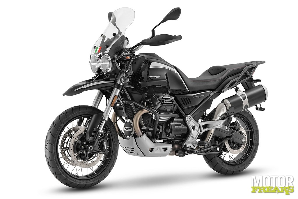 Deze laatste behoort tot de standaarduitrusting, net als de middenbok, de valbeugels en extra LED-lampen. Moto Guzzi V85 TT Guardia d’Onore wordt in een beperkte serie van 1946 exemplaren geproduceerd. Dit aantal exemplaren is een duidelijk verwijzing naar de eerste 75 jaar van de band tussen het bedrijf uit Mandello en het Regiment Kurassiers. Nog een bewijs van de exclusiviteit van deze bijzondere versie is dat het serienummer van het model, van 1 tot 1946, in de klembeugel van het stuur is ingeslagen.
