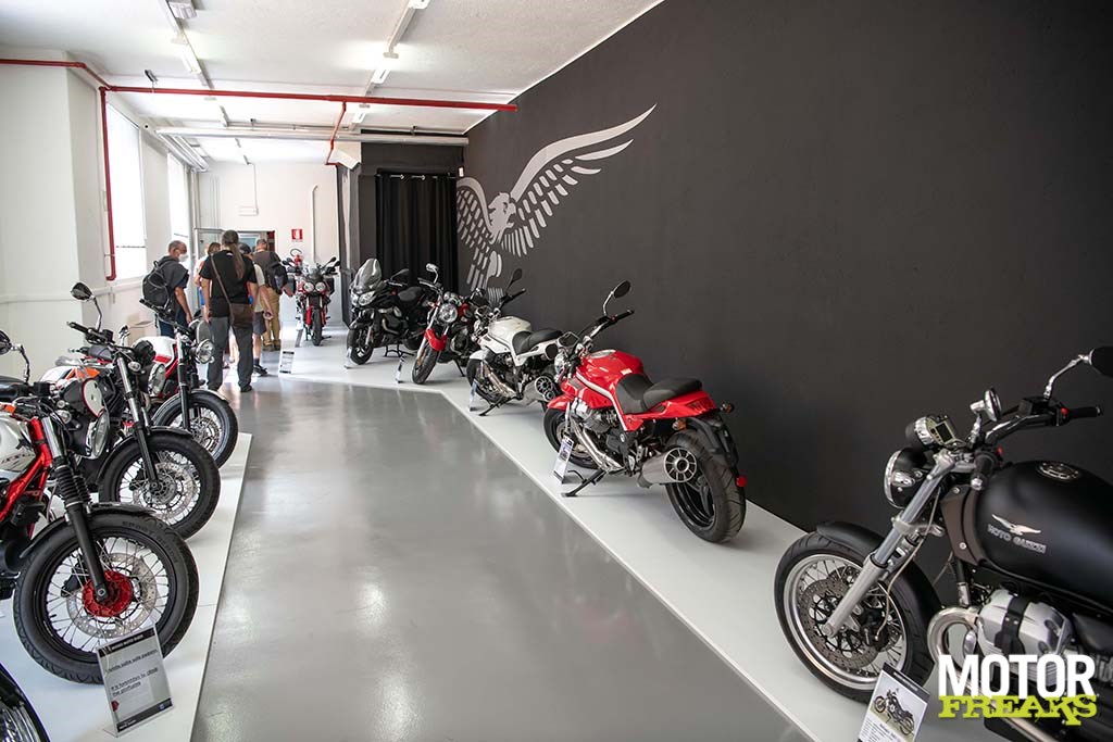 Een nieuw gedeelte op de begane grond biedt een blik op motorfietsen die zijn geproduceerd vanaf het jaar 2000 tot heden, zoals de California 1400 en de Stelvio 1200. De geschiedenis van Moto Guzzi wordt verteld vanaf het eerste gedeelte op de eerste verdieping, met de G.P. uit 1919, het prototype dat leidde tot de productie van de "Normale", de eerste in massa geproduceerde Moto Guzzi in 1921.