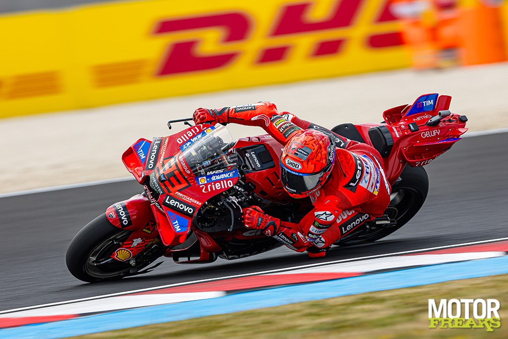 Voor de achtste keer dit seizoen had Marc Marquez zich op de pole position gekwalificeerd, met naast hem Marco Bezzecchi en Fabio Di Giannantonio op de eerste rij, gevolgd door Enea Bastianini, Franco Morbidelli en Fabio Quartararo op de tweede rij, maar het had weinig gescheeld of de Yamaha fabriekscoureur had bij de start een compleet slagveld veroorzaakt.