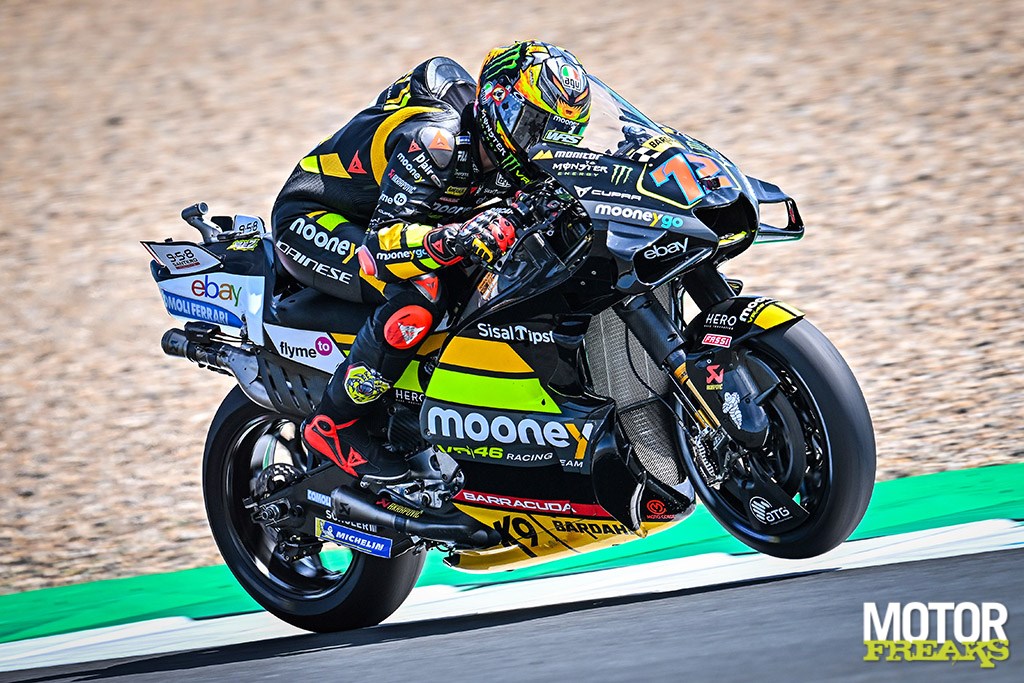 Bezzecchi was op dat moment echter ook onderweg naar een zeer snelle tijd, zat elke sector onder de tijd die Quartararo had gezet om op de streep nog eens 3 tiende onder die tijd door te gaan. Pecco Bagnaia leek het feestje voor Bezzecchi nog te kunnen verpesten, maar kwam op de streep 61 duizendste seconde tekort, terwijl de vlak daarachter rijdende Luca Marini met 41 duizendste seconde verschil Quartararo verdrong van de eerste startrij.