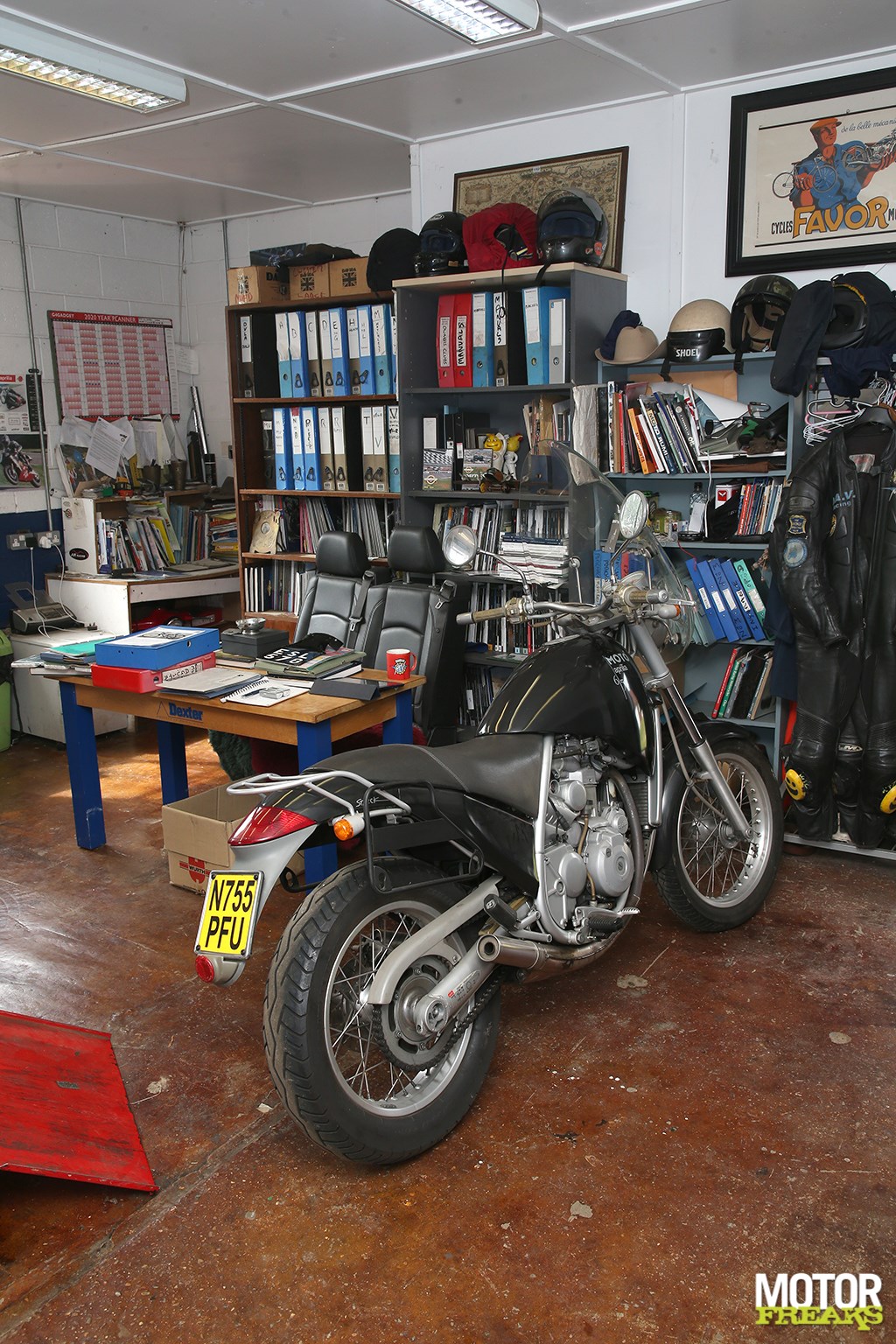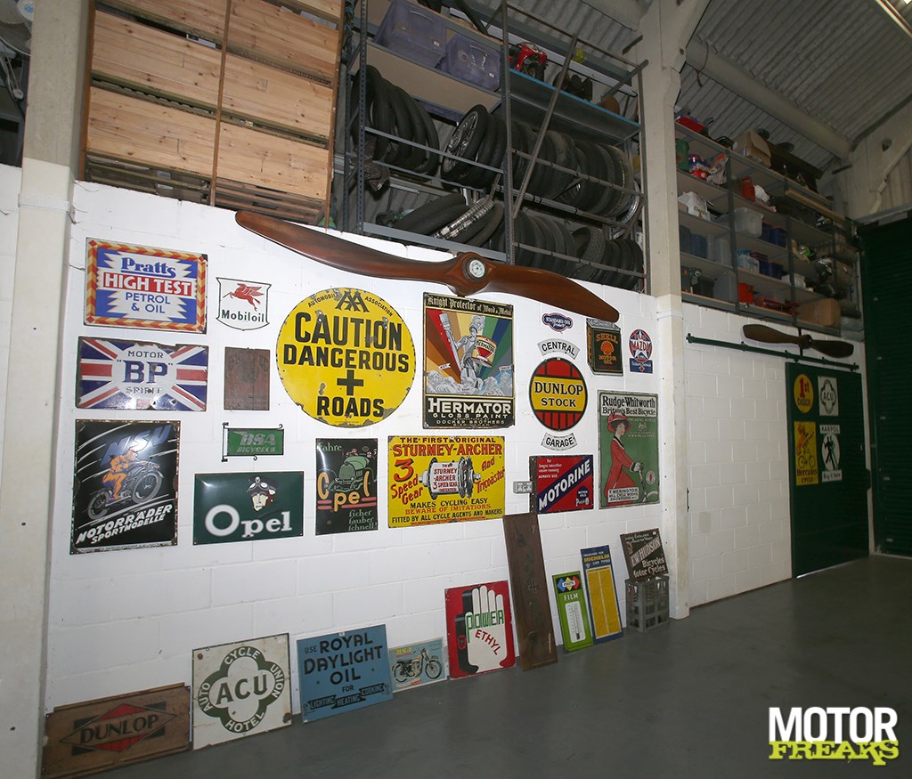 Nu Robert Lusk zijn koers is gaan verleggen voor wat z’n collectie betreft, betekent dat ook dat hij niet meer geïnteresseerd is om meer motoren te kopen? Is er nog een motor die hij nog niet heeft, maar wel graag zou willen hebben? “Genoeg”, legt Robert uit. “Een FN viercilinder zou een goed begin zijn – ik ben nog steeds op zoek naar obscure maar innovatieve modellen. Ik zag laatst een Dresch te koop, een 1930 Franse motor gebouwd door een steenrijke Frans-Algerijnse industrieel genaamd Henri Dresch, waar zoveel slimme dingen op zaten, zoals een vlak stalen stuur in plaats van een buis, een geperst stalen frame enzovoort. Ik ben nog steeds zoekende naar alles op twee wielen dat echt innovatief is – oh, en nog wat mooie posters, ook.”