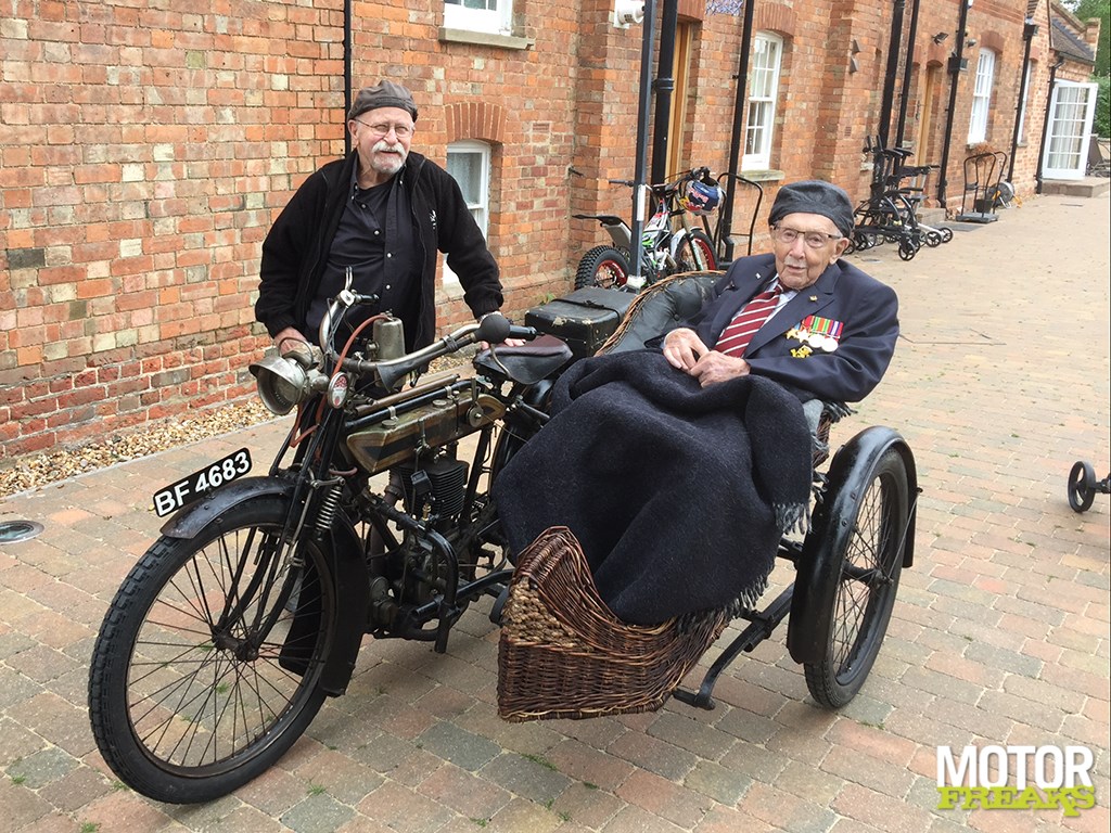 Deze 1912 New Crescent met Wickerwork zijspan is op zich al uniek, maar dankzij de BBC ook wereldberoemd in het VK, nadat de 100-jarige Sir Thomas Moore een ereronde kreeg. Inderdaad, de man die £32,79 miljoen inzamelde voor de NHS in de corona lockdown periode