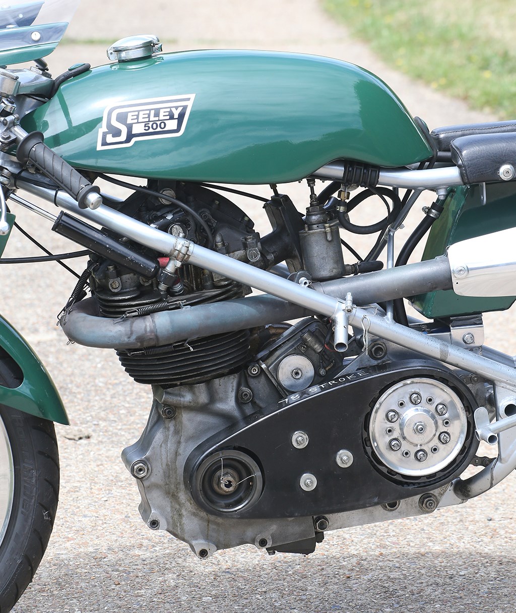 Wat moet je d'r anders mee doen? Thuis in de schuur neerzetten om naar te kijken? Nee, gewoon knallen maar, zijn ze toch voor gemaakt of niet dan?begon hij racers te kopen die hij als jongen had begeerd. Zoals de Vincent Black Shadow in Lightning spec waarmee hij, zijn zoon Chester, vermaard TT winnaar Charlie Williams en Peter Crew allen hebben deelgenomen aan de Goodwood Revival. Zijn ex-Les Graham 1950 350 cc Mk.8 KTT Velocette is een andere Goodwood/Lansdown machine, maar met Roberts erfgoed met Yamaha is het onvermijdelijk dat er hier flink wat van in z’n collectie terug te vinden zijn. “Ik heb een aardige collectie productieracers verzameld, waaronder een TR250 Suzuki, een 125 Tohatsu twin, een 50cc Honda CR110 en 125 cc CR93, en aardig wat Yamaha’s, hoewel ik nooit verder ben gegaan dan de TD1 en alle varianten daarop. Ik heb de van Jim Lee frame voorziene TD1B, wat een fantastische motor is om te rijden. Hij heeft nooit de eer gekregen die hij verdiende voor de eerste Yamaha’s aan het sturen te krijgen, op de manier zoals Colin Seeley dat deed voor de Yamsel en natuurlijk AMC eencilinders.” Inderdaad, de Lusk collectie omvat een zeer beroemde Seeley Mk.4 racer, de lichtgewicht ‘fabrieks’ G50 met schijfrem voor die in 1971 door Dave Croxford werd geracet – de laatste fabrieks Seeley voordat het bedrijf twee jaar later ten onder zou gaan.