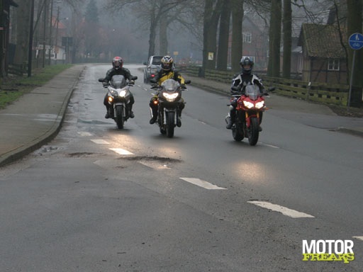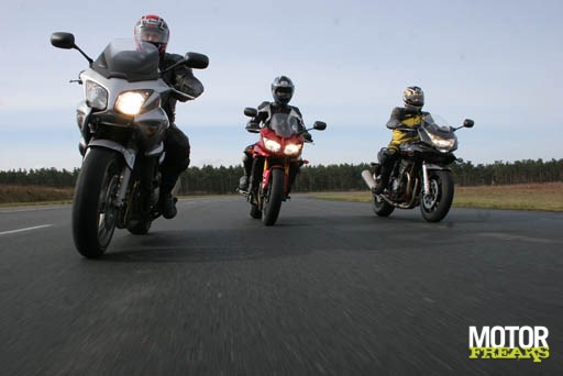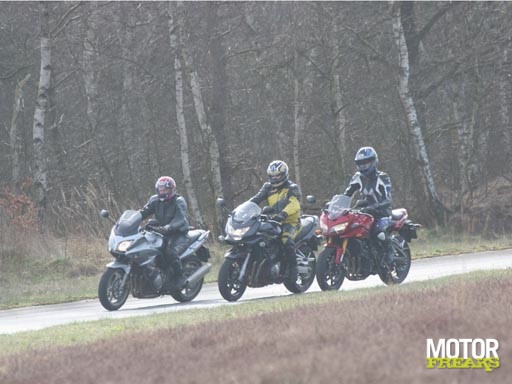 En dat naast elkaar zetten gaat goed. Al is het al gelijk in het begin moeilijk om er een naam aan te geven. Nu hebben wij deze test maar even toersport genoemd, maar het had ook gemakkelijk "allrounder" test kunnen worden genoemd of "semi-nakeds" of... tja, verzin het maar want het lijkt of wel bijna alles kan. Het zijn motoren