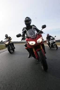 Met maar liefst 50 paardenkrachten meer, ligt het in de lijn van verwachtingen dat de Fazer ook het snelst en sportiefst van de drie is. En deze verwachting komt ook uit, tenminste zolang er al wordt gereden. De topsnelheid is zeker het hoogst van de drie, zoals we hebben ondervonden op de Duitse Autobahn. Ook met accelereren staat de Fazer goed haar mannetje, maar daar speelt wel het aantal toeren in mee. Met een licht teruggetuned R1 blok heeft het ook het karakter dat vooral de kracht ligt in het hogere toerengebied. Wordt in het juiste werkgebied gereden, dan zijn de Honda en de Suzuki tot achtervolgen aangewezen. Staat de naald van de toeren in het middengebied dan gaat het in het begin nog gelijk op, waarbij de CBF het langst met de Fazer mee kan oprijden. De Bandit is vooral sterk in de lagere toeren. Bij accelereren uit stilstaand gaat het dan ook erg vlot, waarbij zowel de Honda als Yamaha nog goed volgen om als er hogere toeren worden bereikt - zoals ze het zo mooi bij wielrennen zeggen - erop en erover te gaan.