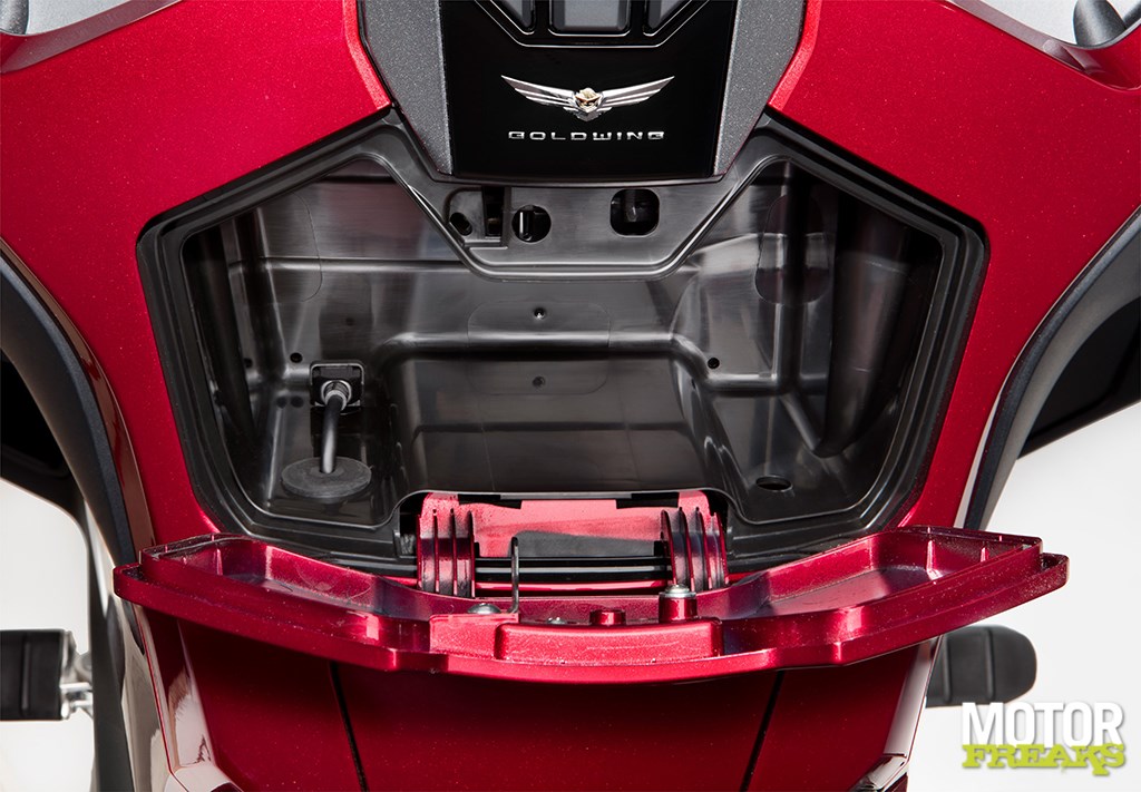 Een opmerkelijk punt in het ontwerp is dat Honda de kofferruimte van de Gold Wing heeft verkleind. Volgens Honda heeft onderzoek ze geleerd dat ondanks dat de Gold Wing als globetrotter pur sang wordt gezien, het grote gros van de consumenten de Gold Wing voornamelijk voor ritten van 2 a 3 dagen gebruikt. En super veel bagageruimte dus eigenlijk helemaal niet zo belangrijk is.