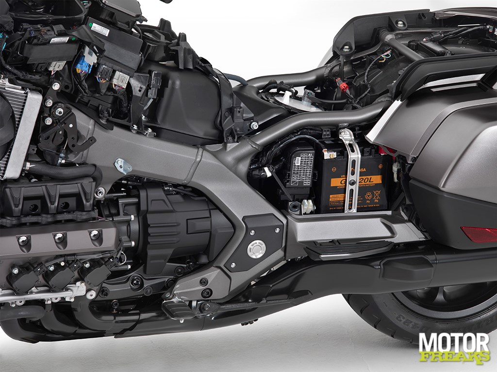 Net als de vorige GL1800 wordt ook deze zesde generatie Gold Wing (je zou ook kunnen spreken van een derde generatie GL1800) aangedreven door een flat-six boxermotor, dat echter compleet nieuw ontworpen is. Volgens Honda is het nieuwe motorblok niet alleen veel lichter (6,2 kg om precies te zijn), het moet ook veel compacter en krachtiger zijn. Het topvermogen is nu naar 124,5 pk bij 5.500 toeren per minuut gegroeid (was 118 pk bij eenzelfde toerental voor het huidige model), terwijl de nieuwe 1.833 cc flat-six nu goed is voor een maximum koppel van 170 Nm bij 4.500 toeren per minuut (was 167 Nm bij 4.000 tpm). Trouwens, nu de cilinderinhoud toch even de revue passeert, het verschil met de huidige 1.832 cc zescilinder boxermotor lijkt minimaal, maar om dat te realiseren is alles aangepast.