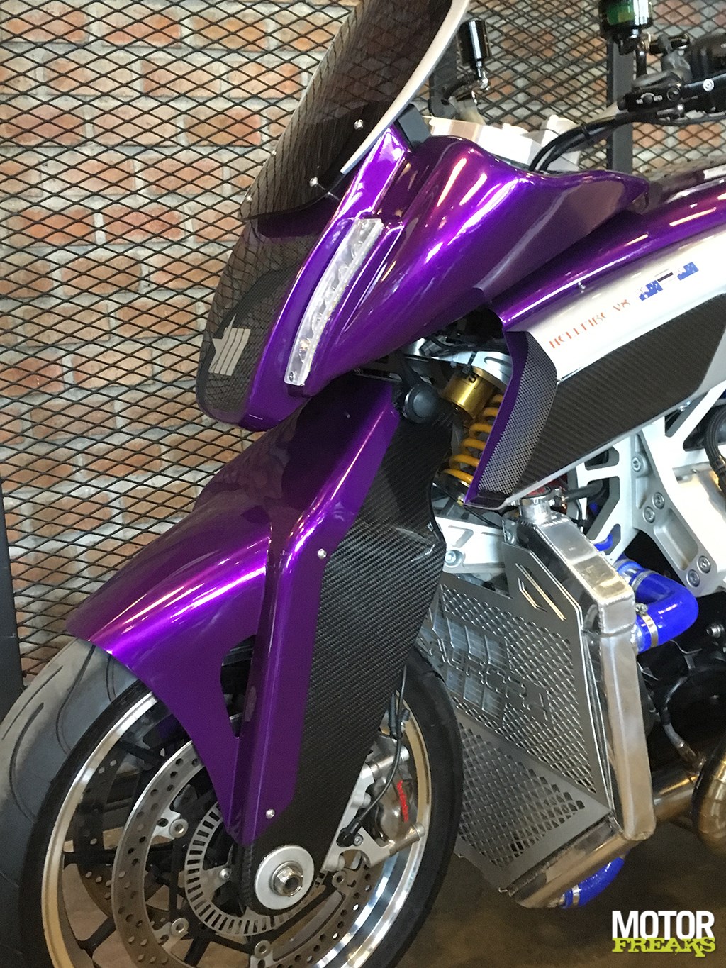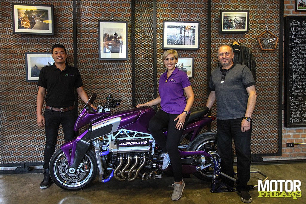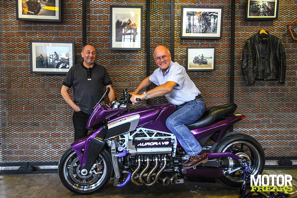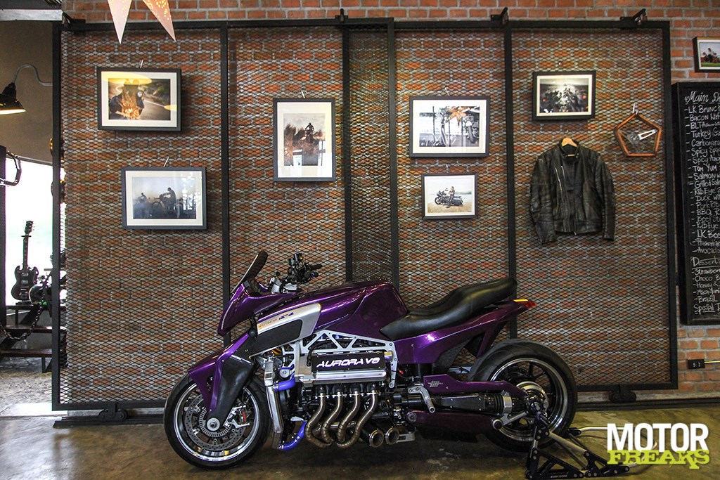Smaller dan een Guzzi en mooi uitzicht op de inlaatkelkenhebben getoond wordt de R&D van de 2.575cc 417 pk sterke productieversie van de Hellfire V8 door Messina in Thailand gedaan. Messina is al zes jaar woonachtig in Bangkok en de productie staat gepland voor later volgend jaar in Chonburi, land van Triumph’s trio aan Thai fabrieken waar recent nog de monstrueuze Rocket III werd gebouwd. Niet ver weg is ook de Ducati fabriek waar de Diavel cruiser wordt geassembleerd, die wat prestaties trouwens nog niet in de schaduw kan staan van deze Hellfire, die een ongelofelijke 319 Nm koppel bij 7.000 toeren per minuut produceert. Na hem op de EICMA te hebben ontmoet, ontpopte de kans Vincent Messina in zijn basis in downtown Bangkok te ontmoeten en de Aurora V8 van dichtbij te bekijken tot een fascinerend verhaal over doorzettingsvermogen en vindingrijkheid.