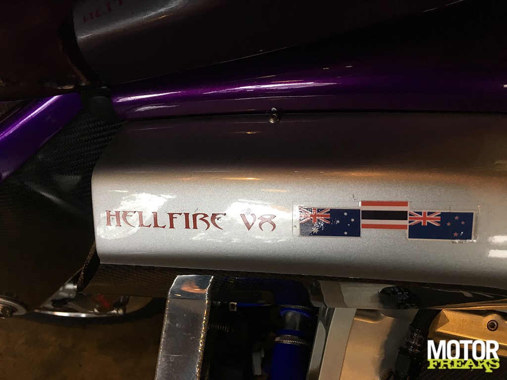 Alison Scoullar was tevens Messina’s partner op een ander vlak, het duo won tot tweemaal toe het Australische zijspan kampioenschap eind jaren ’90 van de vorige eeuw en eindigden vier keer op de tweede plaats met zelf ontworpen door ZZR1200 aangedreven zijspannen. Van zijspan naar Aurora Hellfire was echter een enorme stap. Dus, hoe kwam het idee een eigen V8 te bouwen tot stand?