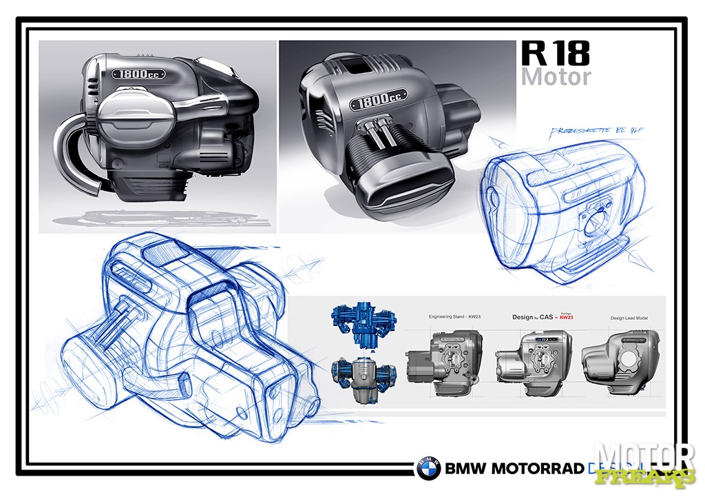Zo zag het concept eruit van de R 18. Van ons hadden ze 'm zo meteen in productie mogen nemenunieke beat hebben met een indrukwekkend koppel van meer dan 150 Nm in een groot deel van het toerenbereik. Het verhaal gaat, dat de zuigermaat werd bepaald tijdens de oktoberfeesten in München. De diameter van de zuiger komt over een met de maat van een 1-liter bierpul…