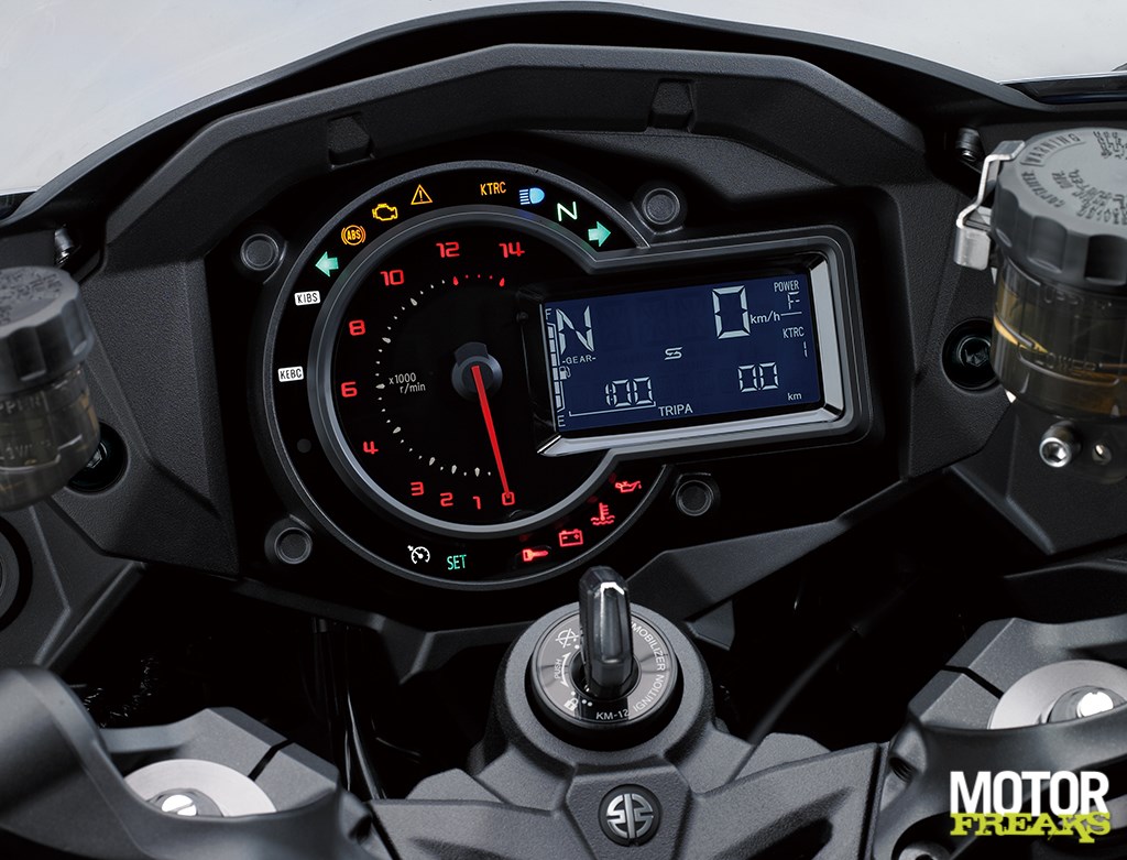 Ook op het gebied van elektronica is Kawasaki bij het SE-model net even wat verder gegaan. Standaard voor zowel de Ninja H2 SX als de SX SE is de 6-assige Bosch IMU die continue de roll, yaw en pitch van de motor monitort en alle elektronische speeltjes aanstuurt, waaronder de tractiecontrole die in 3 standen in te stellen is. Stand 1 is het meest sportief en laat een zekere mate van wielspin toe om de acceleratie te maximaliseren. De KTRC (Kawasaki TRaction Control) houdt daarbij niet alleen rekening met de wielsnelheden, maar neemt ook de gegevens van het motorblok, de input van de rijder en de positie (als onder andere de hellingshoek) van de motor mee in z’n calculatie. Mode 2 is volgens Kawasaki een mooie balans tussen acceleratie en geruststelling, terwijl Mode 3 het meest ingrijpt en voor situaties met weinig grip is bedoeld. Wheelies zijn voorbehouden aan Mode 1 (kleintjes voor Mode 2), wie juist niet wil dat het voorwiel richting luchtruim wordt gelanceerd kiest liever voor Mode 3.