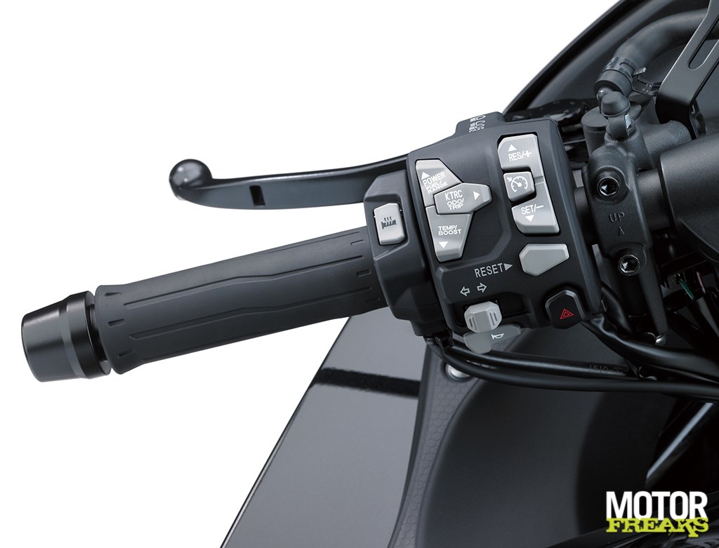 Naast tractiecontrole, rijmodi en Engine Brake Control zijn ook beide uitvoeringen standaard met cruise control uitgerust, waarvan de bediening op de linker stuurhelft is ondergebracht. Een druk op de knop is volgens Kawasaki voldoende om de cruise control te activeren, de snelheid kan eenvoudig met de + en – knop worden aangepast en schakelt zich uit zodra het remhendel, koppelingshendel, of rempedaal wordt bediend. Of wanneer het gas voorbij ‘gasdicht’ wordt gedraaid.