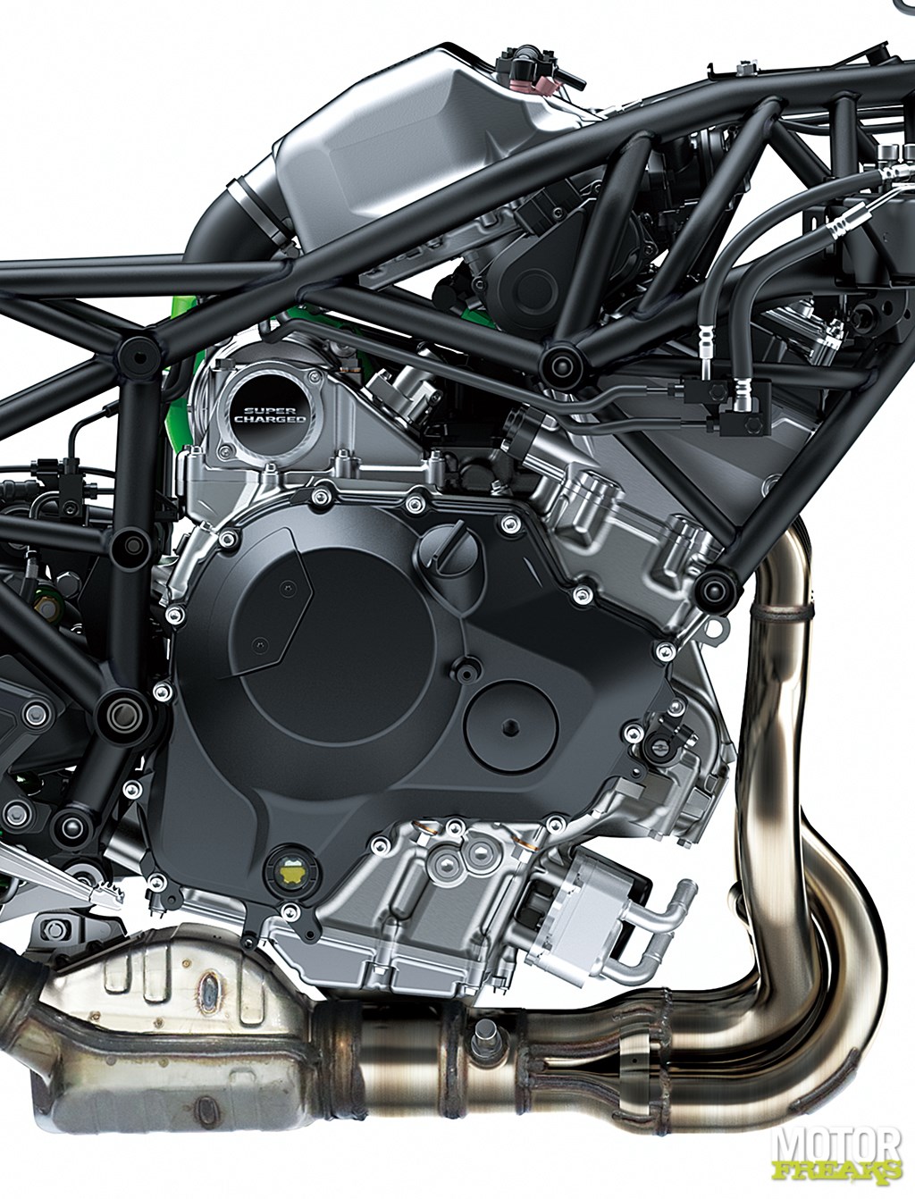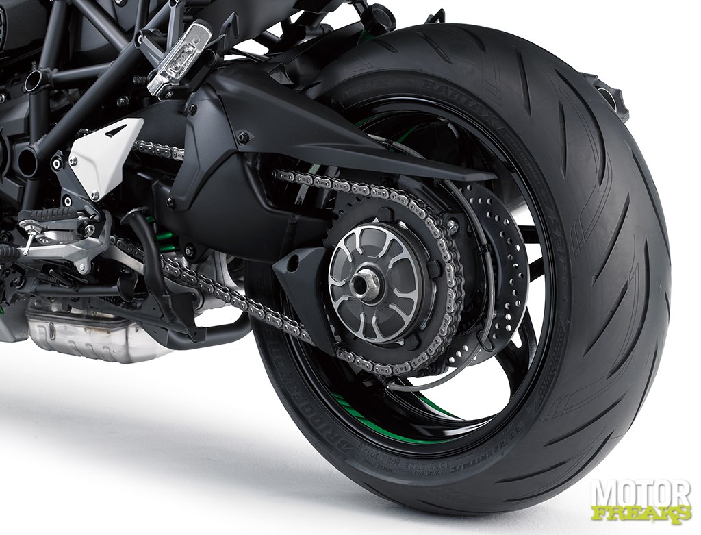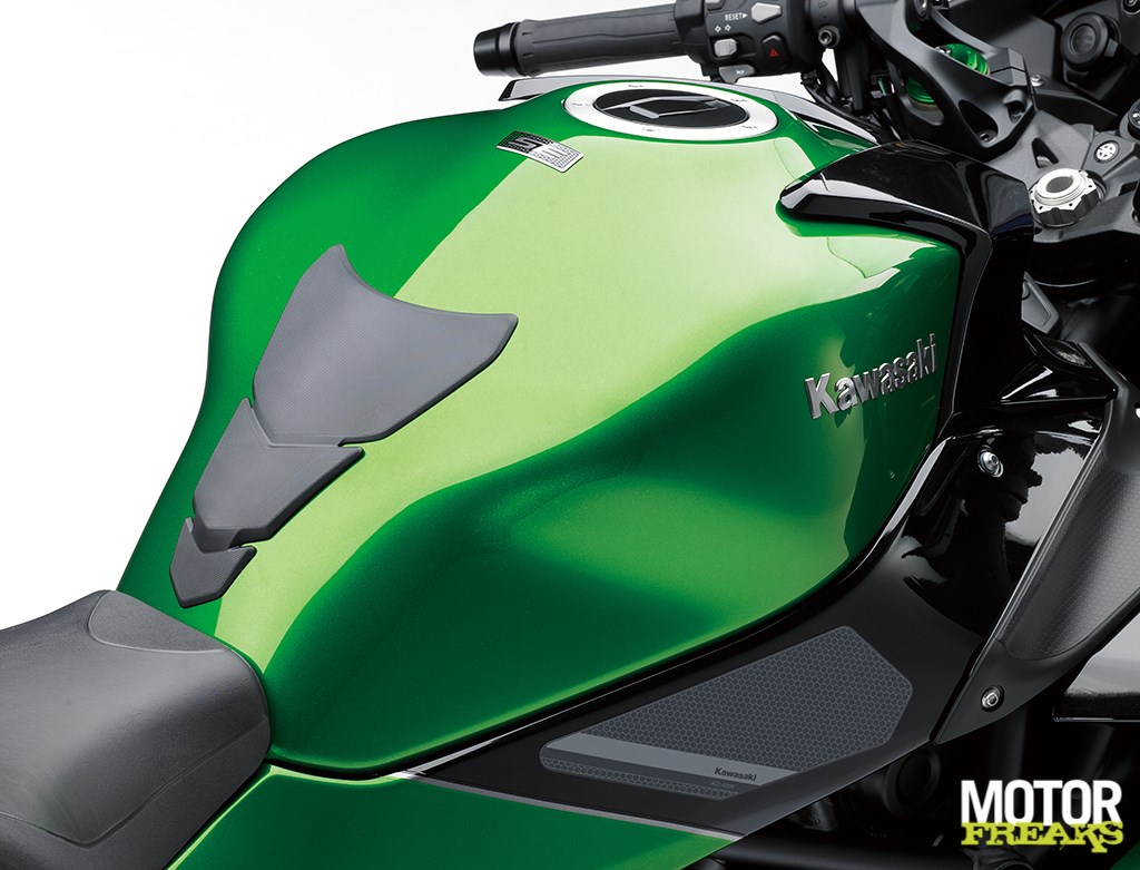 maar aan de binnenkant is echt alles veranderd: de schoep en het inlaattraject zijn compleet herzien, de zuigers, cilinderkop, cilinder zelf, krukas en nokkenassen compleet nieuw, net als de gasklephuizen en het uitlaatsysteem. Ten opzichte van de Ninja H2 zijn ook de ratio’s van de versnellingsbak aangepast.
