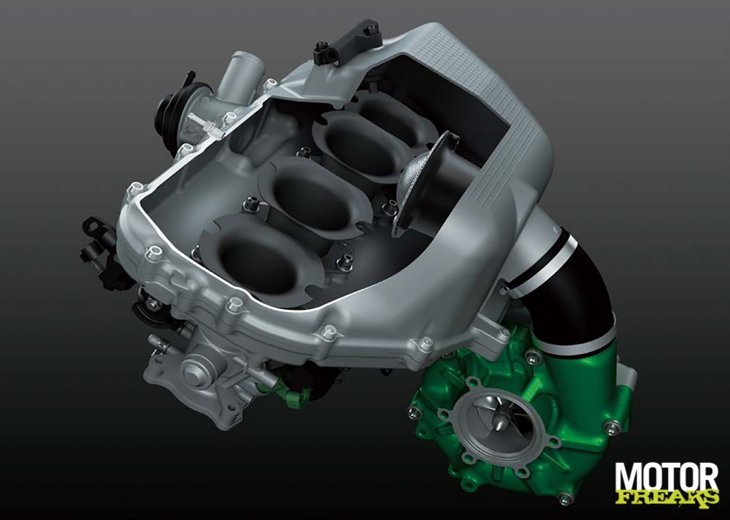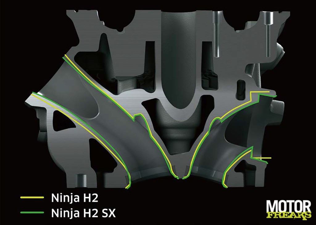 Net als bij de Ninja H2 krijgt de supercharger z’n frisse lucht via een Ram Air luchtinlaat die aan de linkerkant is geplaatst, maar waarvan het frontaal oppervlak nu ongeveer 80% van de Ninja H2 is. De vorm van de Ram Air duct is wel herzien om de verse lucht in een zo recht mogelijke lijn te laten stromen, om de supercharger zo efficiënt mogelijk z’n werk te laten doen. De inlaatkamer is van 6 liter naar 5 liter verkleind, wat volgens Kawasaki ook moet hebben bijgedragen aan de efficiency van de supercharger, die nu beter is dan de Ninja H2. In de praktijk moet zich dat hebben vertaald naar een motorblok dat aanzienlijk zuiniger is. Kawasaki spreekt over een verbruik dat 25% gunstiger is dan de gewone H2, ofwel in lijn met het verbruik van de Z1000SX en Versys 1000.