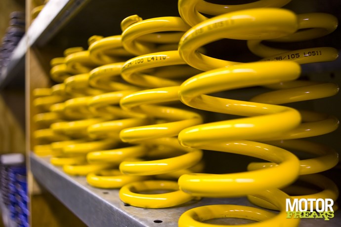 Zoals je ziet doen ze bij HK-suspension ook in de topmerken op vering en dempers. Ze zijn importeur van Wilbers schokdempers, Eibach veren, Marzochhi voorvorken en officieel service centre voor Ohlins schokdempers. Buiten het onderhouden en reviseren van dempers kun je ook heel goed bij ze terecht voor het verbeteren van de veren. Is vaak wel nodig daar de meeste motoren met een net iets te slappe veren de fabrieken uitrollen.
