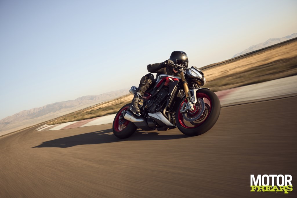 Onder de tank blijft de 765cc-driecilinder met 130 pk en 80 Nm trouw aan het RS-blok, dat hoogtoerig, responsief en perfect uitgebalanceerd is. Triumphs racedata uit Moto2 hebben geleid tot verdere verfijningen, zowel in duurzaamheid als in gasrespons. Elektronische assistentie zoals Track-ABS, geoptimaliseerde traction control en Triumph Shift Assist maken het mogelijk om zowel op het circuit als op de weg op maximale prestaties te vertrouwen.