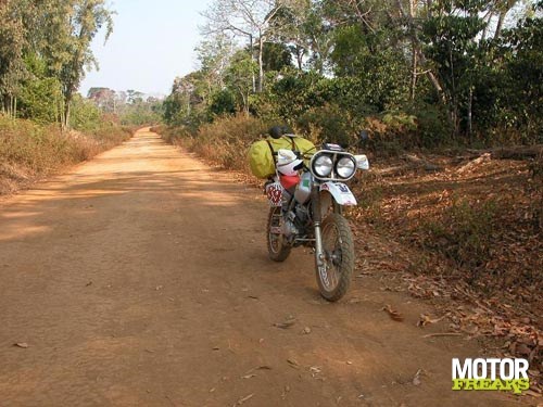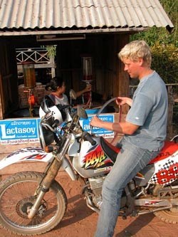 Aangezien het reizen per motor ons in India zeer goed was bevallen, wilde we weer op de motor rondtrekken; dus moest er een motor gezocht worden. De enige keuze die je in Laos hebt, zijn kleine motorfietsen van maximaal 150 cc. Niet echt geschikt voor twee mensen met bagage, maar voor toeristen is een Honda Baja 250 te huur. Een off-road machine met 28 pk (wel 10 meer dan de Enfield Bullet !!). Deze heeft wel voldoende ruimte en kracht voor dit werk. Eigenlijk heb je zo'n off-road machine in Laos ook wel nodig, want 80 % van de wegen is onverhard.