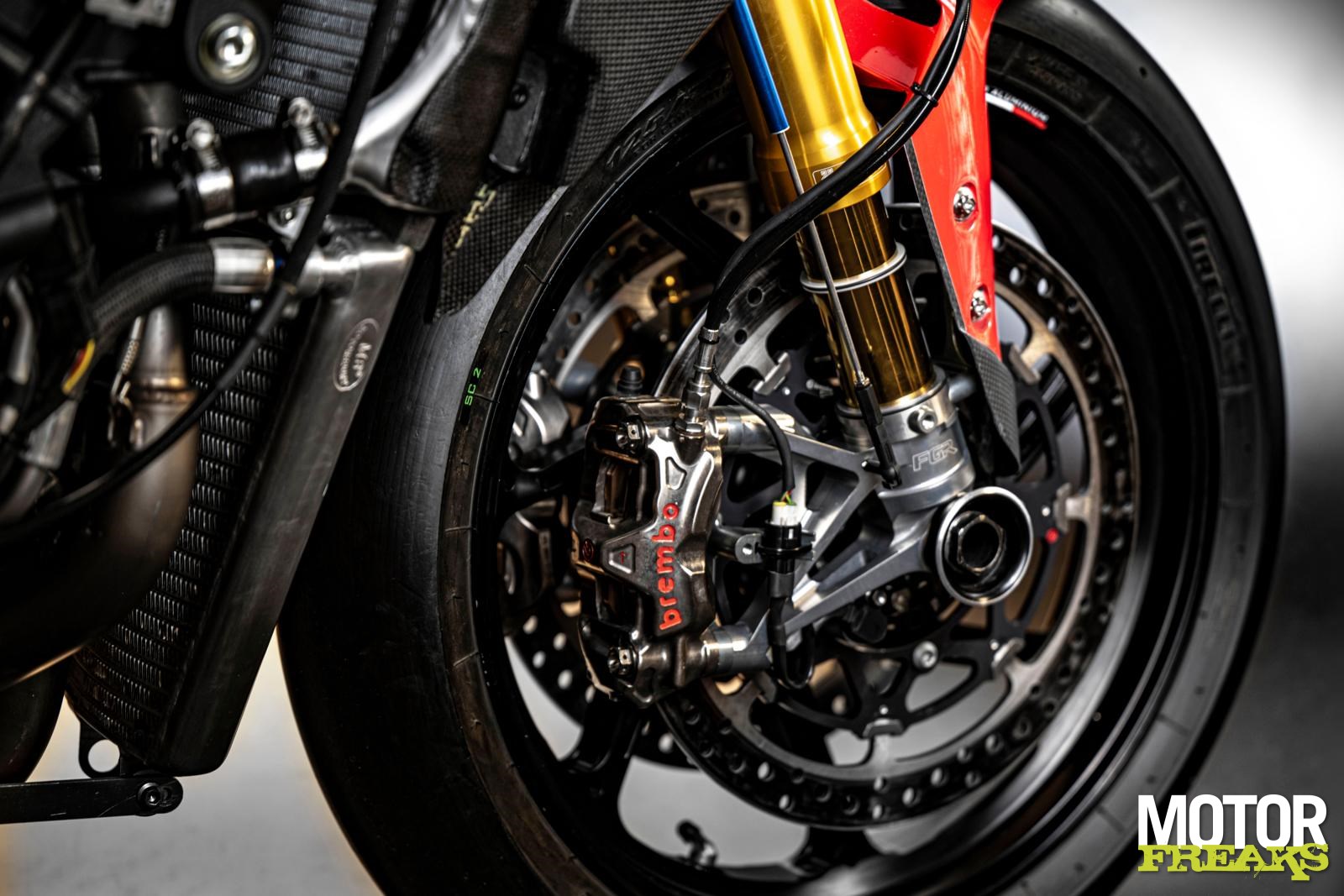 De lijst omvat onder meer een supersterk en lichtgewicht carbonfiber subframe dat is ontworpen om plaats te bieden aan zowel een aangepaste benzinetank met een lager zwaartepunt als de Magneti Marelli ECU.