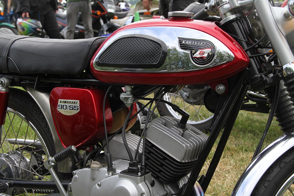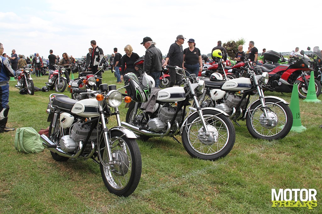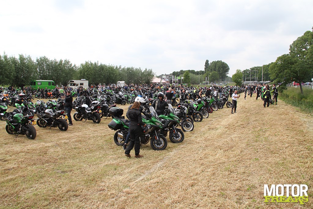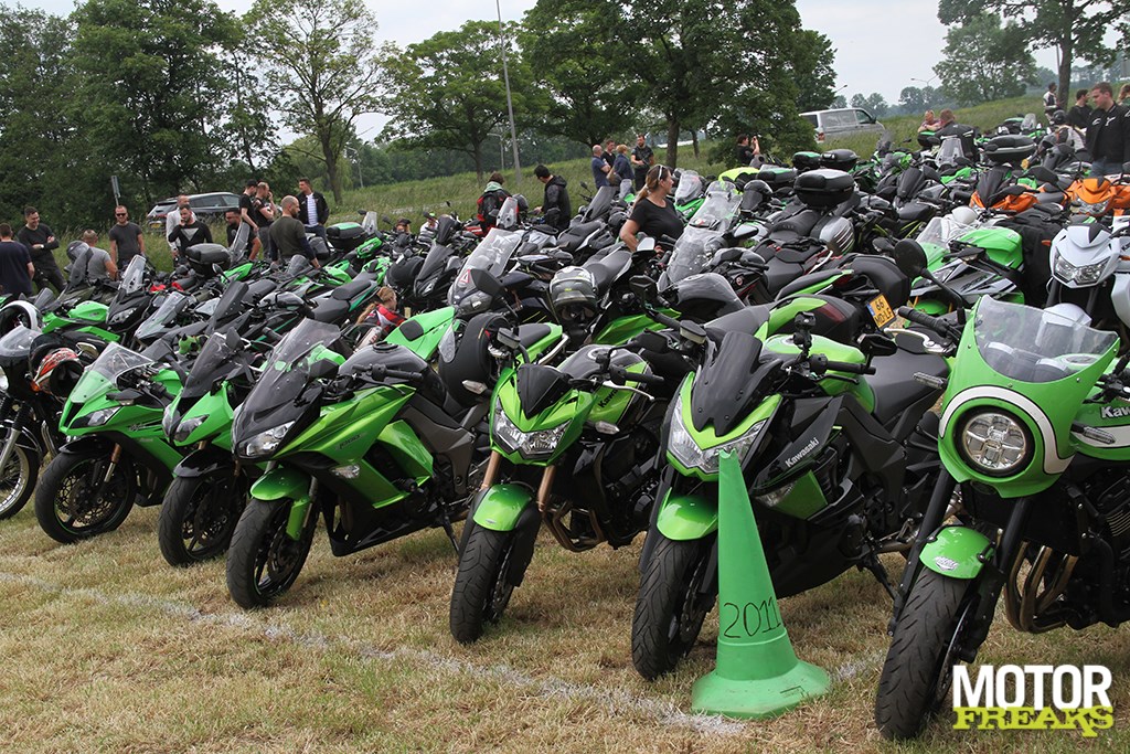 Voor diegenen die het hebben gemist, de Kawasaki Tour was in meerdere opzichten indrukwekkend. Indrukwekkend vanwege het kilometerslange lint motoren (reken maar uit: pak 'm beet 10 meter afstand op de man voor je, rijdend in baksteen-formatie praat je al over een parade van meer dan 4 kilometer lang), indrukwekkend vanwege die vette klassiekers (de oudste klassieker was een 1968 100 D1, de kleinste een 50cc en de grootste een ZZR zijspan) en indrukwekkend vanwege het publiek dat massaal was uitgerukt, alsof je na afloop van de TT weer naar huis rijdt. Doordat wij als '2019' als laatsten de weg op werden gestuurd hadden wij misschien nog wel de beste overzicht: op de open velden genieten van het prachtig groene lint motoren voor ons en doordat tot drie maal toe de route eenzelfde weg in twee verschillende richtingen aandeed, zelf in volle teugen hebben kunnen genieten van de al het moois dat Kawasaki in de loop der jaren op de markt heeft gebracht.