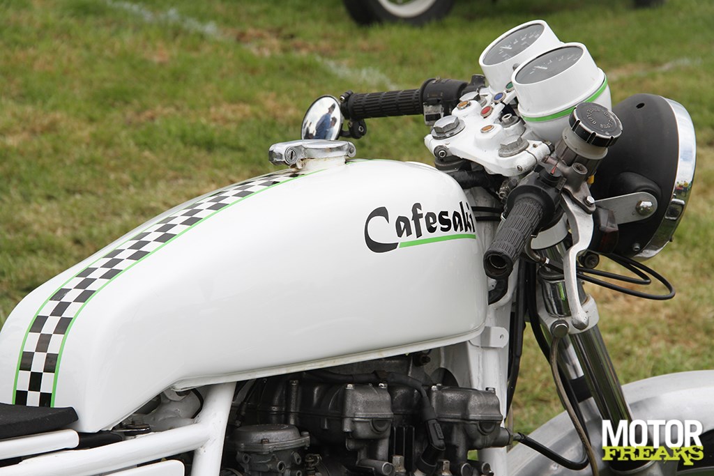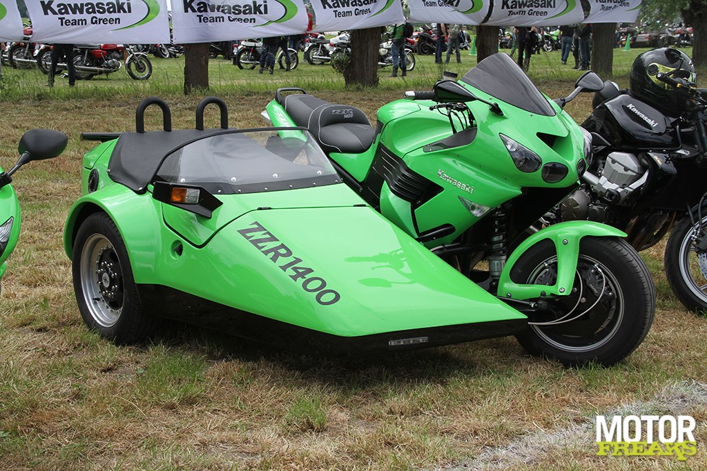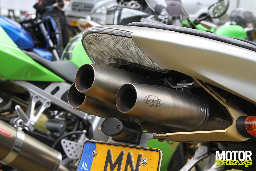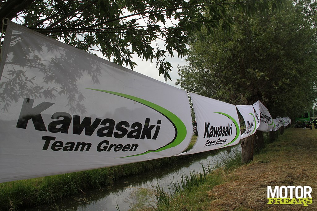 Terwijl ik langs de motoren afstruin en de ene na de andere prachtige special of goed gepreserveerde klassieker aanschouw, met vette klanken vanuit de feesttent op de achtergrond en twee 'stuntrijders' op de provinciale weg die het aanwezige publiek op wheelies en rolling burn-outs trakteren, bedenk ik me dat ik maar één motorzaak ken waar dit allemaal kan. Geen dealer die er elk jaar weer in slaagt om de naastgelegen weilanden groen van de motoren te kleuren als Kawasaki specialist Nol Bikker, die weliswaar geen officieel Kawasaki dealer meer is, maar waar nog steeds groen bloed door de aderen stroomt. Na het leggen van de fundering de kelders van zijn nieuwe pand onder water zetten om met jetski's te kunnen racen, het grootste ZZR1400 zandkasteel laten bouwen, 40 palmbomen laten aanrukken voor een oase aan Kawasaki's, het zijn slechts enkele voorbeelden van wat Bikker in het verleden heeft gedaan.