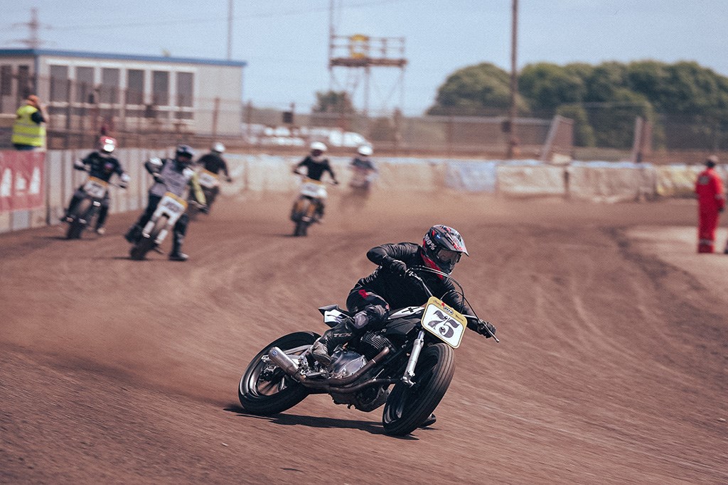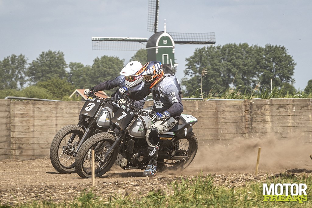 Flat Track is een oude en zeer laagdrempelige manier van motorsport, ontstaan in de fifty’s in de USA waar er op een onverharde ovale baan om het snelst rondjes worden gereden waarbij de motor al glijdend de bocht wordt ingestuurd en er vervolgens driftend weer uitkomt. De laatste jaren is deze vorm van motorsport wereldwijd, maar zeker ook binnen Europa aan een stevige opmars bezig, niet in de laatste plaats doordat menig MotoGP coureur z’n rijkwaliteit en